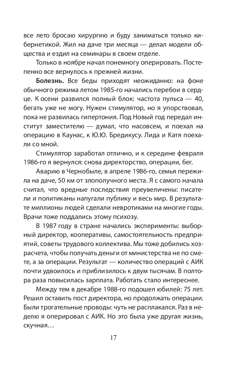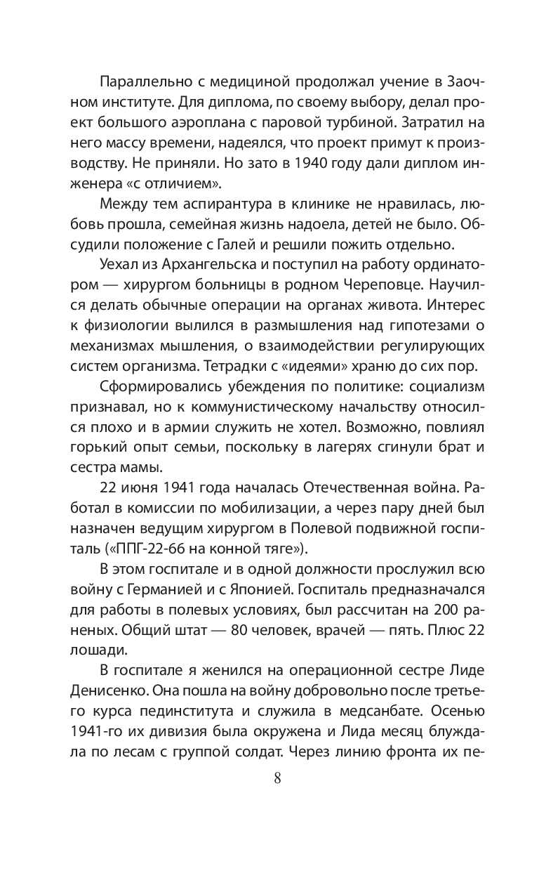 Николай Михайлович Амосов – врач с мировым именем, известный своими операциями на сердце и уникальными методами продления жизни. В первый же день Великой Отечественной войны он добровольцем пошел в армию и был назначен хирургом в полевой госпиталь. В невероятно трудных условиях врачи спасали раненых в битвах под Москвой и Сталинградом, на Украине, в Венгрии, в Германии, а затем были направлены на Дальний Восток и участвовали в войне с Японией.