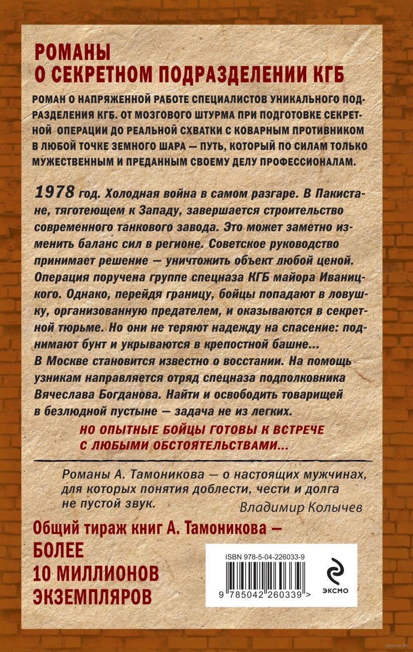 1978 год. Холодная война в самом разгаре. В Пакистане, тяготеющем к Западу, завершается строительство современного танкового завода. Это может заметно изменить баланс сил в регионе. Советское руководство принимает решение – уничтожить объект любой ценой. Операция поручена группе спецназа КГБ майора Иваницкого. Однако, перейдя границу, бойцы попадают в ловушку, организованную предателем, и оказываются в секретной тюрьме. Но они не теряют надежду на спасение: поднимают бунт и укрываются в крепостной башне... В Москве становится известно о восстании. На помощь узникам направляется отряд спецназа подполковника Вячеслава Богданова. Найти и освободить товарищей в безлюдной пустыне – задача не из легких. Но опытные бойцы готовы к встрече с любыми обстоятельствами…
