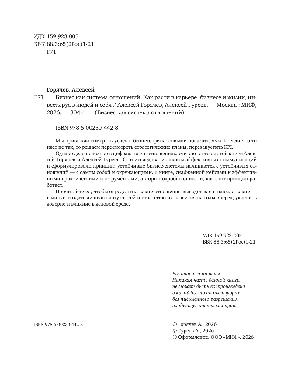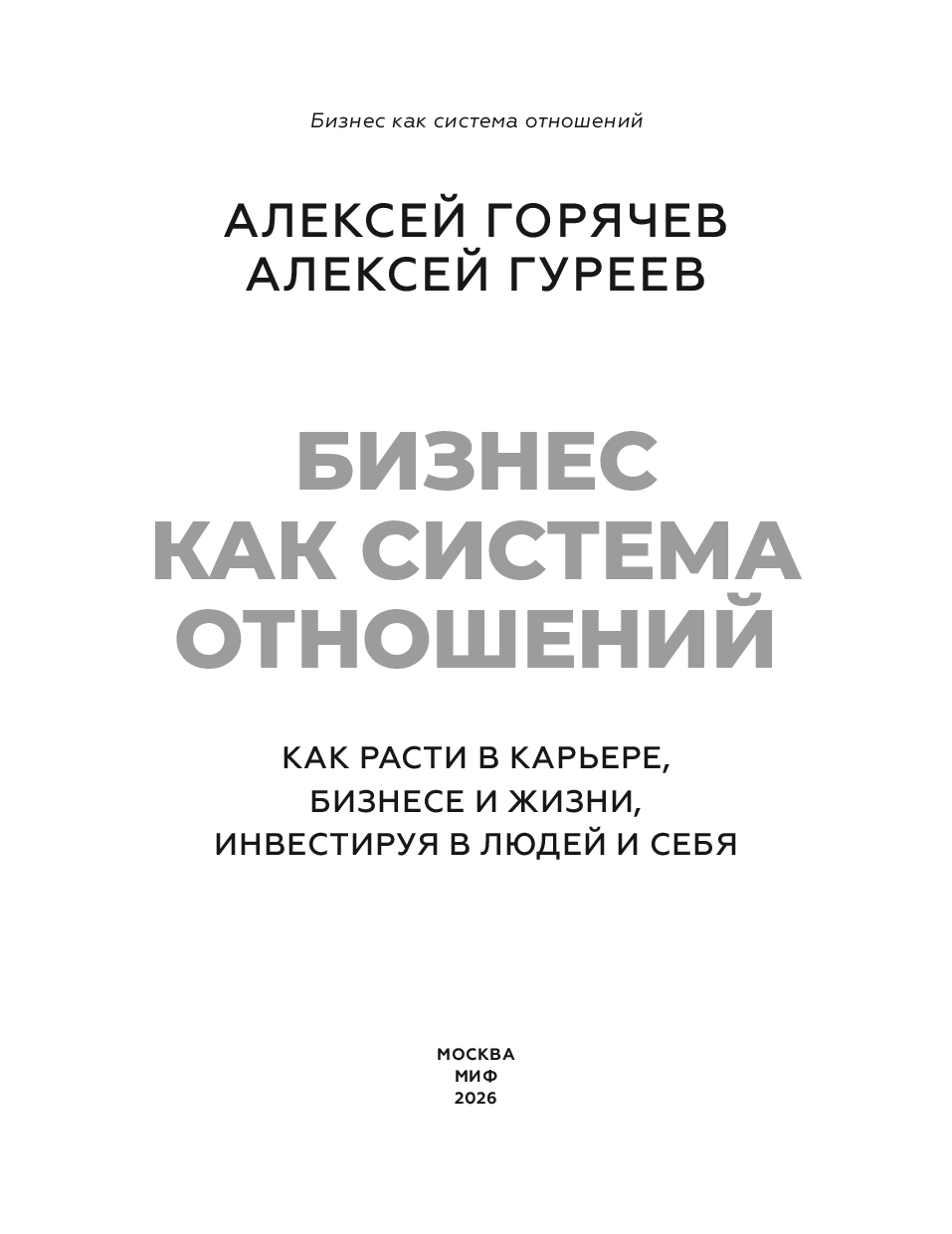 Правильно выстроенные и осознанно проработанные связи определяют успех предпринимателя и CEO. Авторы, Алексей Горячев и Алексей Гуреев, предлагают начать с себя – выстроить доверительные отношения с собой, изучить свой характер, темперамент, теневые стороны. Затем перейти к следующему уровню – отношениям с близкими, командой, подчиненными и руководителями, партнерами, инвесторами и клиентами.