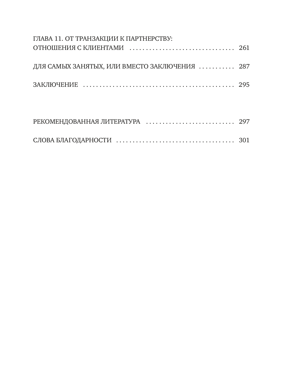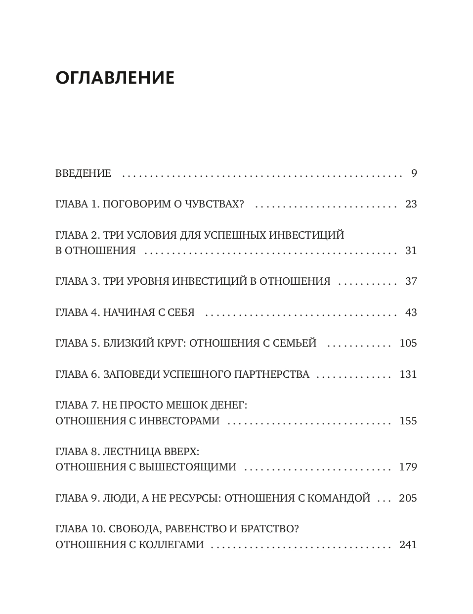 В начале книги представлены инструменты диагностики и инвентаризации отношений, далее – практики для их выстраивания и укрепления. Отношения подчиняются тем же законам, что и инвестиции: сначала вы вкладываетесь, а затем получаете прибыль. Книга раскрывает эту неочевидную для бизнеса тему и дает понятные инструменты построения эффективных связей.
