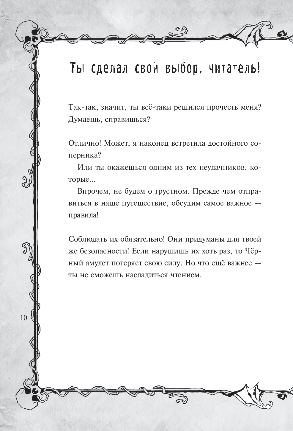 Злая книга ищет читателя, который готов пройти запутанный квест и стать обладателем Чёрного амулета. Этот артефакт наделит своего хозяина огромной волшебной силой. И кажется, следующим всемогущим магом можешь стать именно ТЫ! Ведь ты не трусливый зайка и точно не испугаешься историй Злой книги. Приготовься к захватывающему приключению и скорее открывай первую страницу!