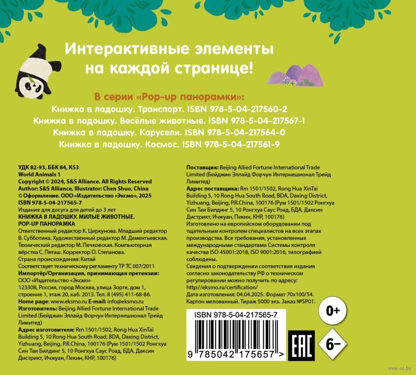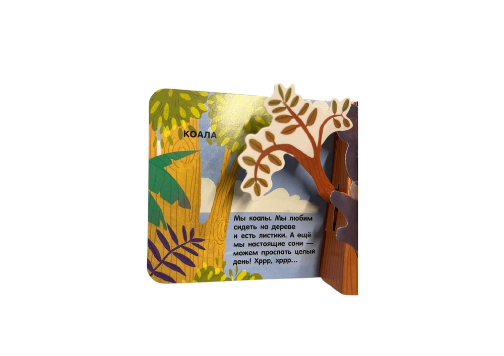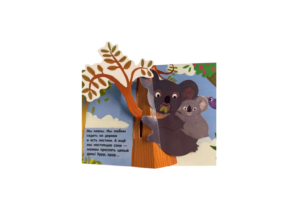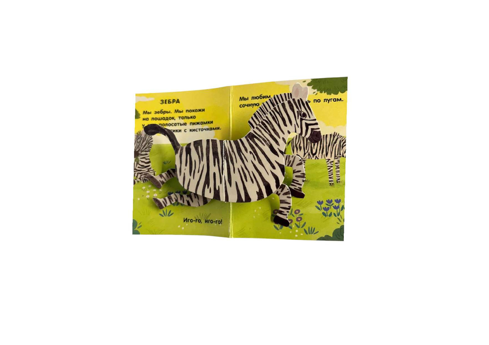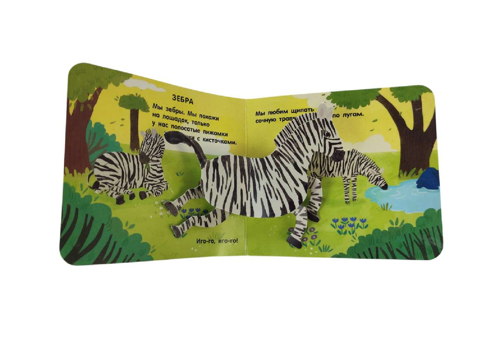 На каждой странице тебя ждут объёмные элементы и pop-up панорамки. Играй с подвижными деталями и развивай мелкую моторику! А ещё узнай интересные факты про животных в интерактивной книжке для самых маленьких.