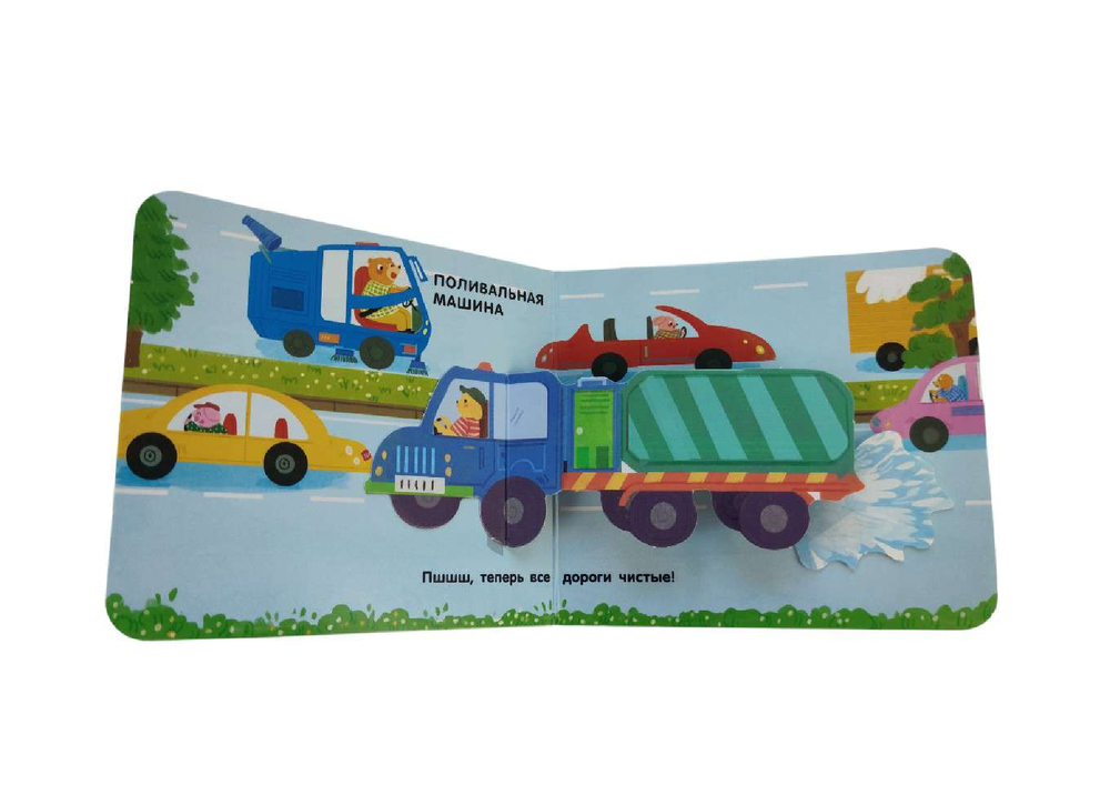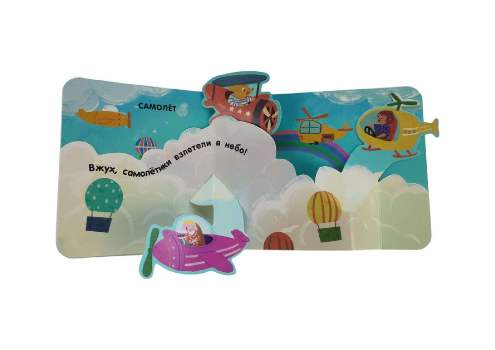 На каждой странице тебя ждут объёмные элементы и pop-up панорамки. Играй с подвижными деталями и развивай мелкую моторику! А ещё узнай интересные факты про транспорт в интерактивной книжке для самых маленьких.
