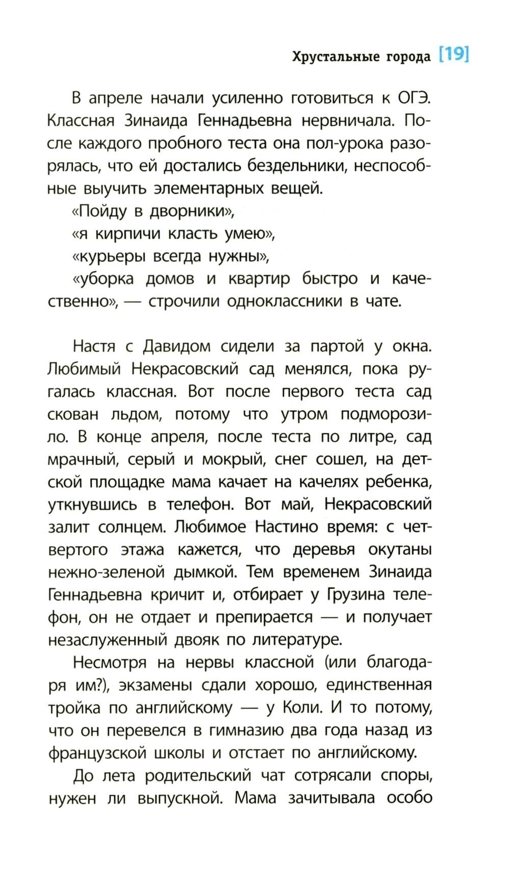 Когда нервы натянуты до предела, когда расставание на час кажется вечностью, каменные улицы превращаются в хрусталь и город звенит. Максим и Настя могли бы не встретиться: он – из разрушенного Мариуполя, она – из Санкт-Петербурга, он ютится в коммуналке с тетей и сестрой, она – единственная дочь обеспеченных родителей. Смогут ли они сохранить свое хрупкое чувство, несмотря на обстоятельства?