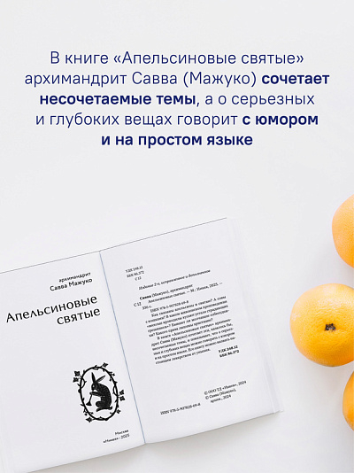 В книге "Апельсиновые святые" архимандрит Савва (Мажуко) сочетает эти, казалось бы, несочетаемые темы, и показывает, что о серьезных и глубоких вещах можно говорить с юмором и на простом языке. Его книгу можно назвать настоящим лекарством от уныния.