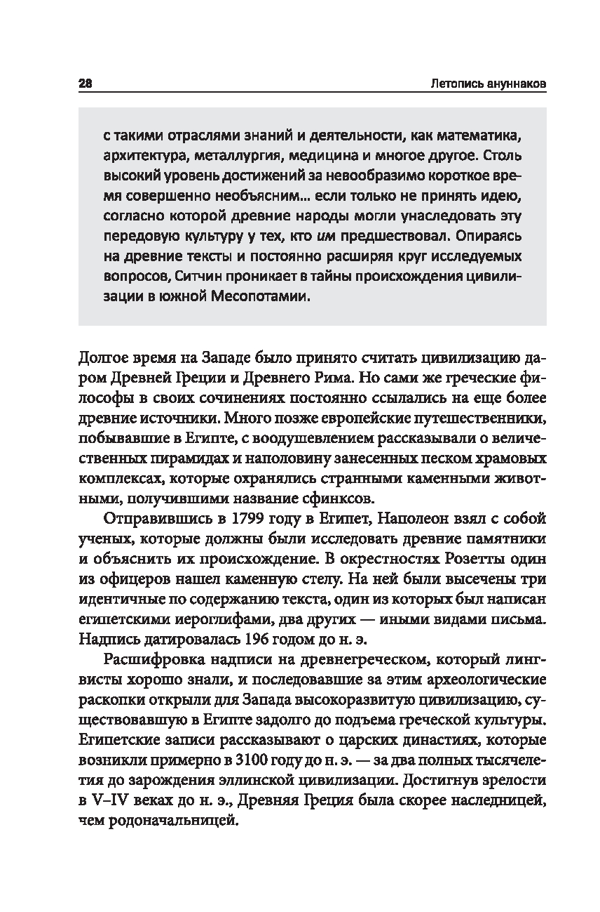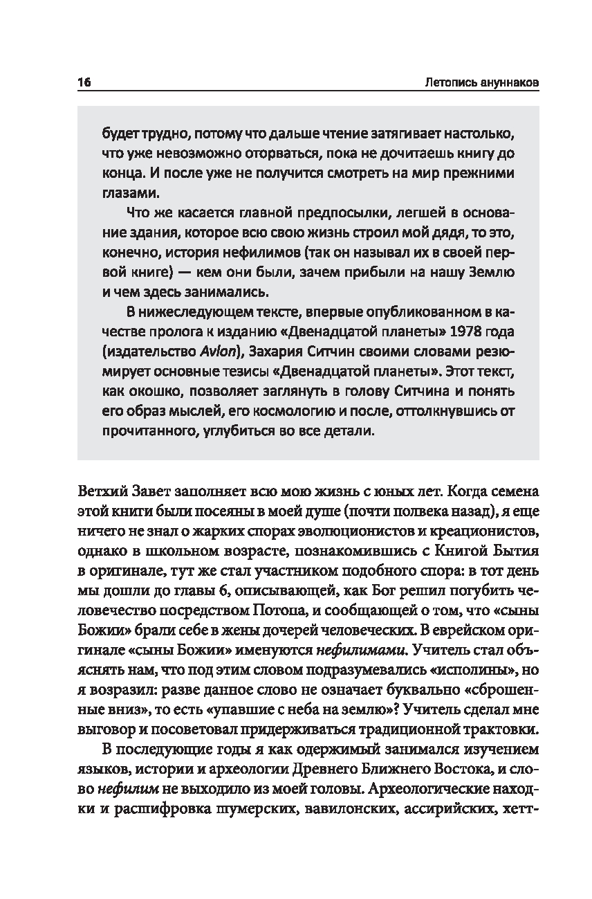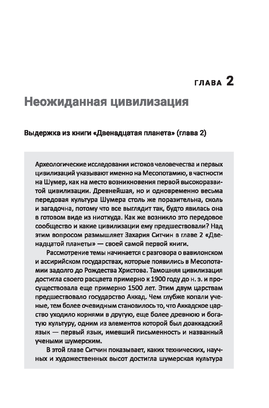 Что, если ветхозаветные и другие древние предания, в том числе шумерские, вавилонские, египетские и греческие, вовсе не мифы, не аллегории, а документальные отчеты о реально имевших место исторических событиях? Славящийся своим умением читать и переводить тексты с древних шумерских и аккадских глиняных табличек, Захария Ситчин решил отнестись к свидетельствам наших предков всерьез и в результате многолетних кропотливых исследований сумел показать, что в этих источниках содержится связный и последовательный рассказ об истинном происхождении человечества и цивилизации.