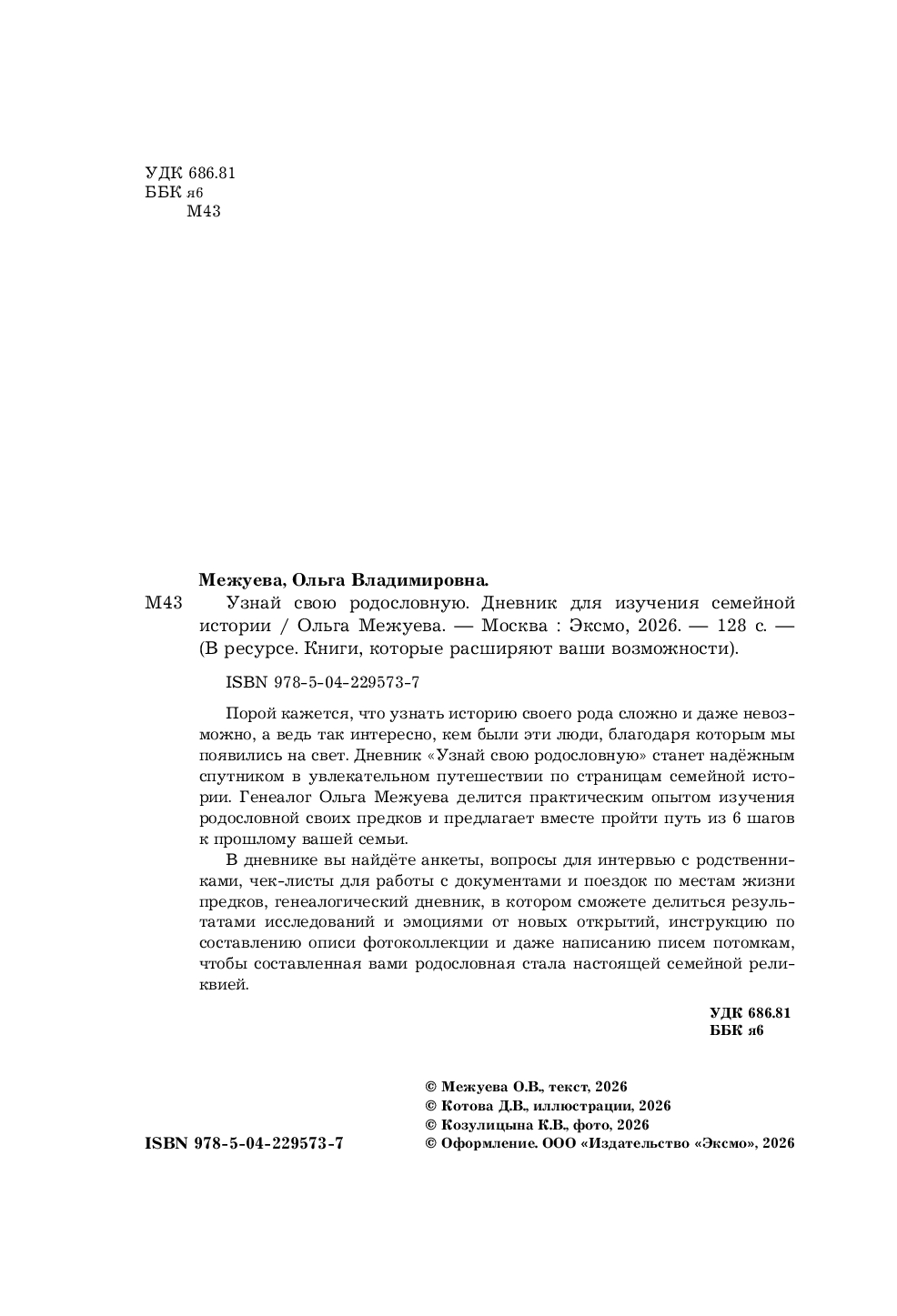 Этот дневник поможет пробудить внутреннего искателя приключений, на каждом этапе поддерживая исследователя на его пути к истории своей семьи.