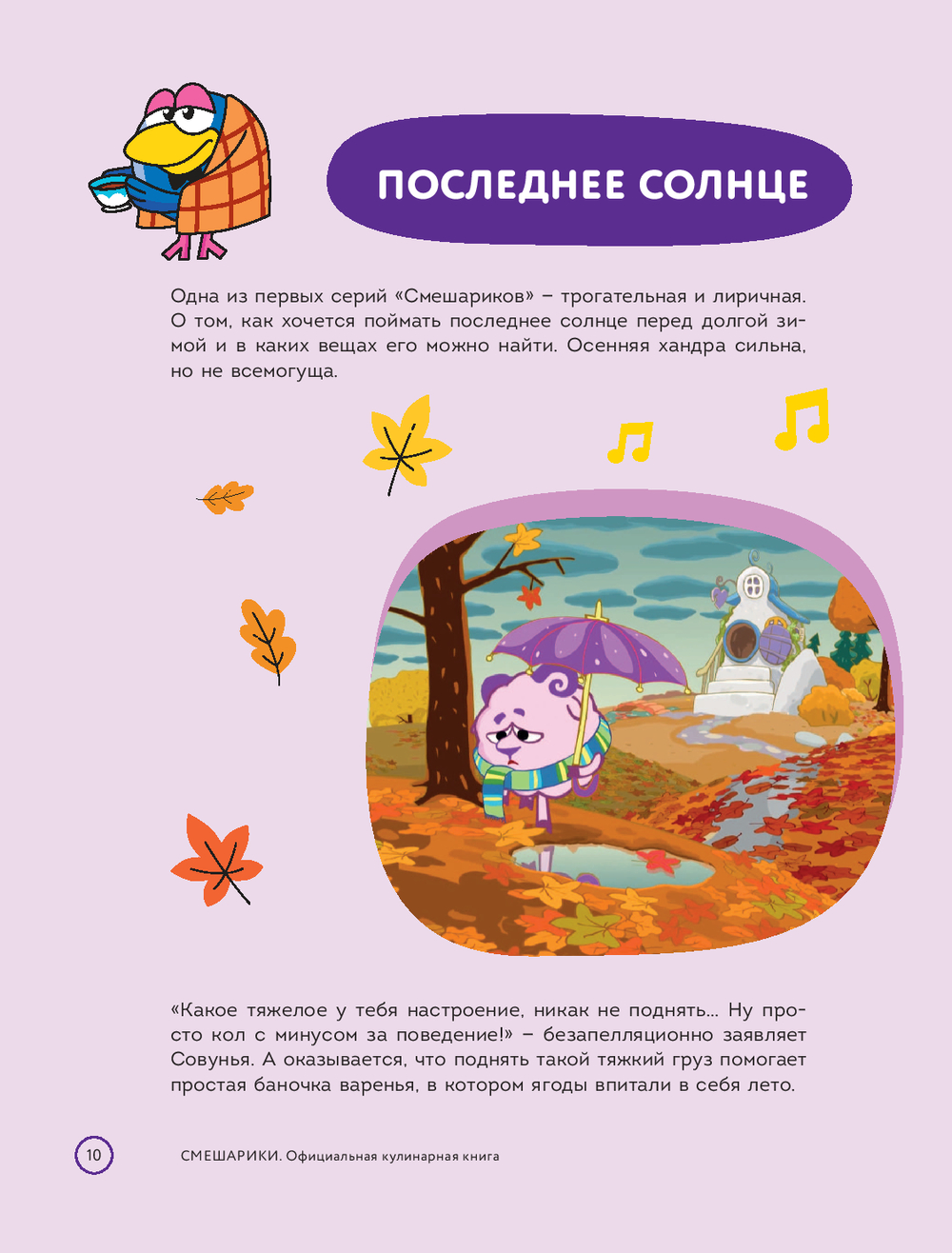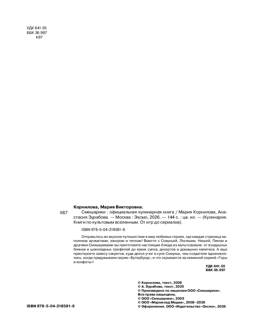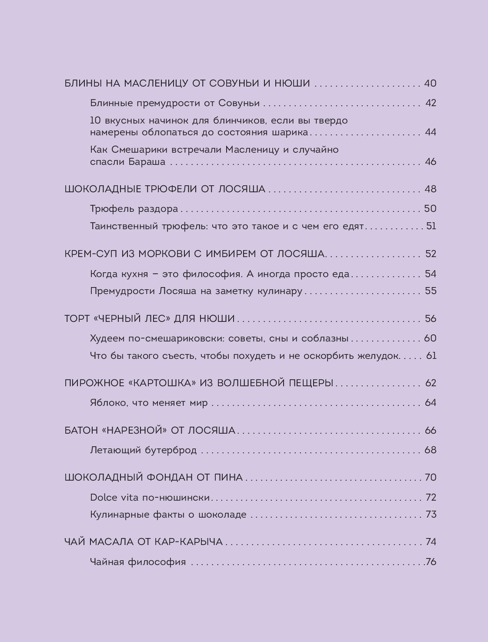 Отправьтесь во вкусное путешествие в мир любимых героев, где каждая страница наполнена ароматами, юмором и теплом! Вместе с Совуньей, Лосяшем, Нюшей, Пином и другими Смешариками вы приготовите настоящие блюда из мультсериала: от воздушных блинов и шоколадных трюфелей до ярких супов, десертов и домашних напитков. А еще приоткроете завесу секретов: куда делся утюг в супе Совуньи, чем создатели вдохновлялись, когда придумывали серию "Бутерброд" и что скрывается за невинной серией "Горы и конфеты"!