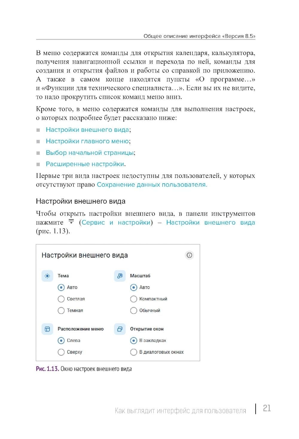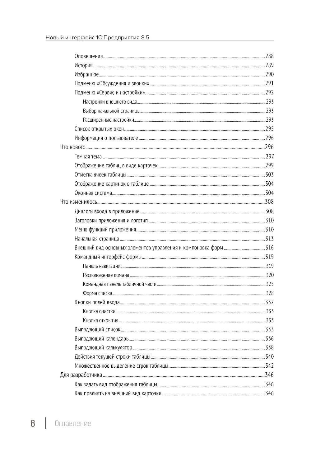 Отдельный раздел книги содержит рекомендации по переводу существующих приложений на новый интерфейс и по созданию новых приложений на платформе "1С: Предприятие 8.5".