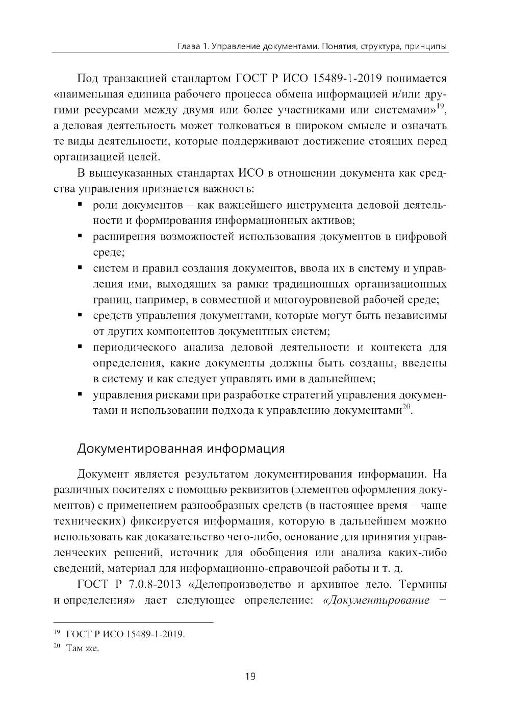 Приводится база законодательных и нормативно-методических актов, регулирующих управление документами, рассмотрены общие требования к составлению и оформлению документов, правила документирования управленческой деятельности. Подробно описывается организация работы с документами независимо от их формы (на бумажном носителе или электронные) с использованием информационной системы управления документами "1С: Документооборот" и особенности работы с отдельными системами документации: кадровой, научно-технической, договорной.