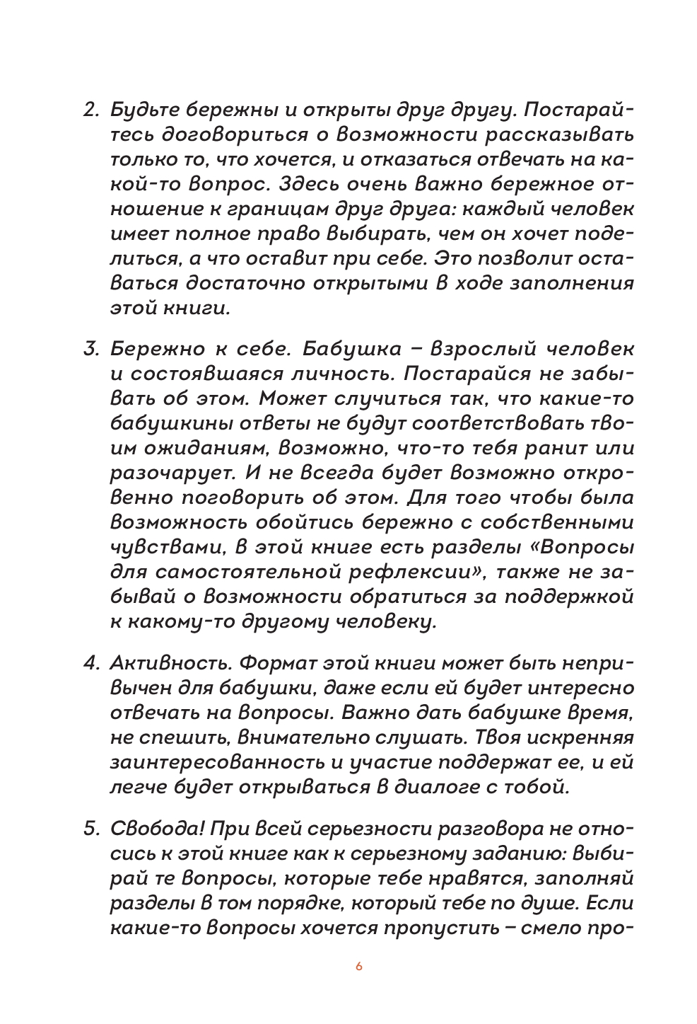 "Наша с тобой история, бабушка" – не просто книга, а пространство для самых теплых воспоминаний и уникальная возможность для вас стать с бабушкой еще ближе. Это приглашение в личное путешествие: вспомнить, как все было, услышать друг друга по-новому, узнать бабушку еще лучше и написать вашу семейную историю – вместе.