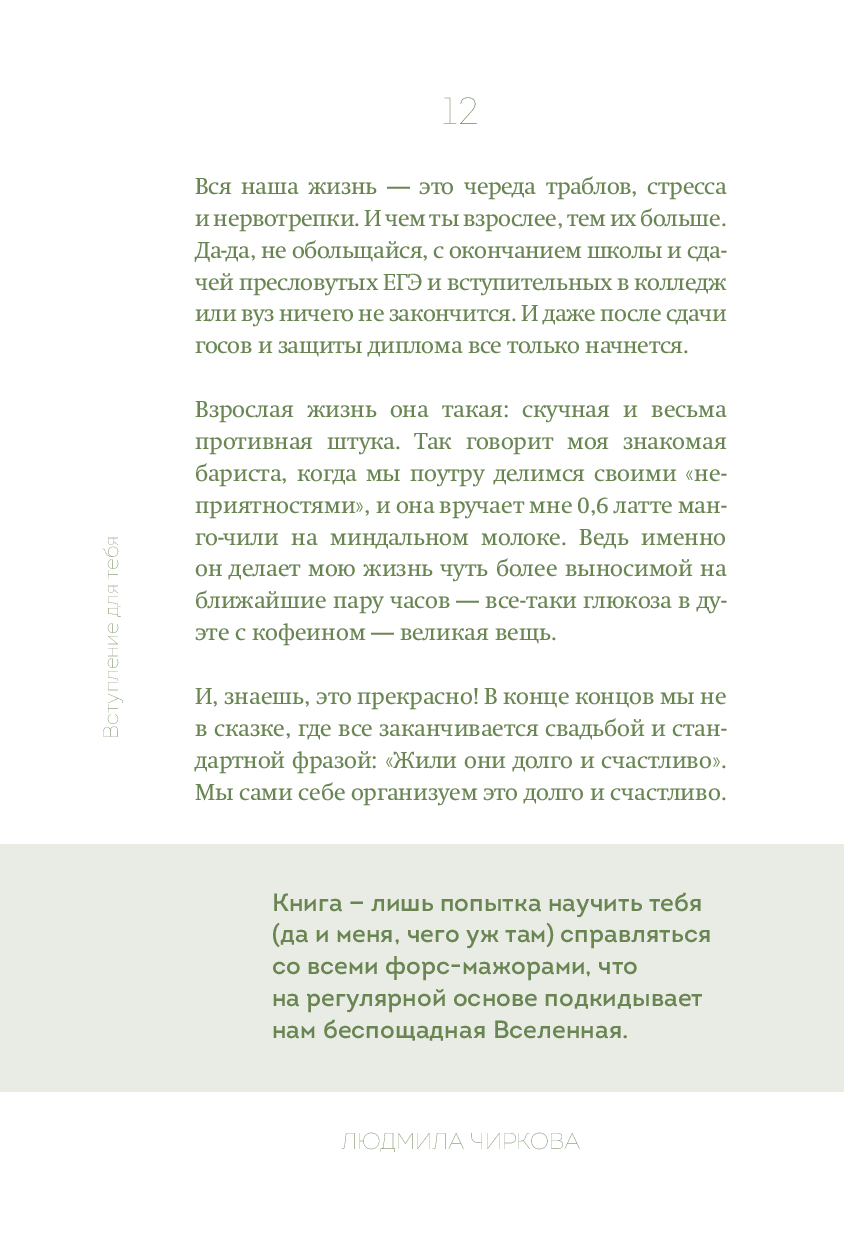 Эта книга поможет разобраться, что с тобой происходит и почему иногда становится так тяжело. Вместе с Людмилой Чирковой, редактором интернет-издания об образовании и воспитании детей "Мел", ты проживешь один обычный день – с утра до вечера – и разберешь самые знакомые ситуации: ранние подъемы, школьные конфликты, давление со стороны взрослых, усталость, тревогу и ощущение, что ты не справляешься.