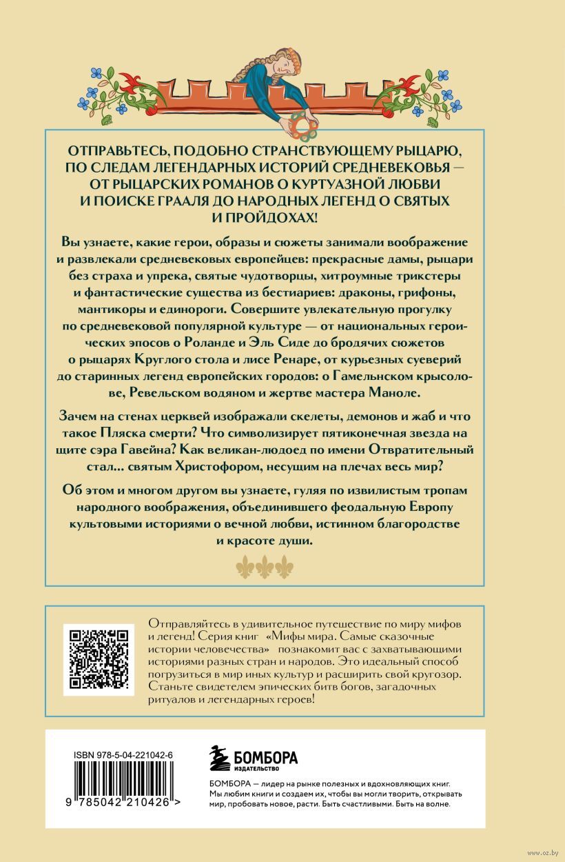 Эта книга приглашает отправиться в увлекательную прогулку по средневековой популярной культуре и узнать, какие герои, образы и сюжеты занимали воображение и развлекали жителей средневековой Европы от Кастилии до Скандинавии, от Ирландии до Таллина. Вам встретятся герои эпических поэм – Беовульф, Роланд, Эль Сид, отважные рыцари Круглого стола, неотразимые трикстеры лис Ренар, Тиль Уленшпигель и Робин Гуд, прекрасные дамы – королева Гвиневра и леди Годива, любимые народные святые, такие как святой Патрик и святой Франциск, и, конечно же, фантастические существа из средневековых бестиариев.