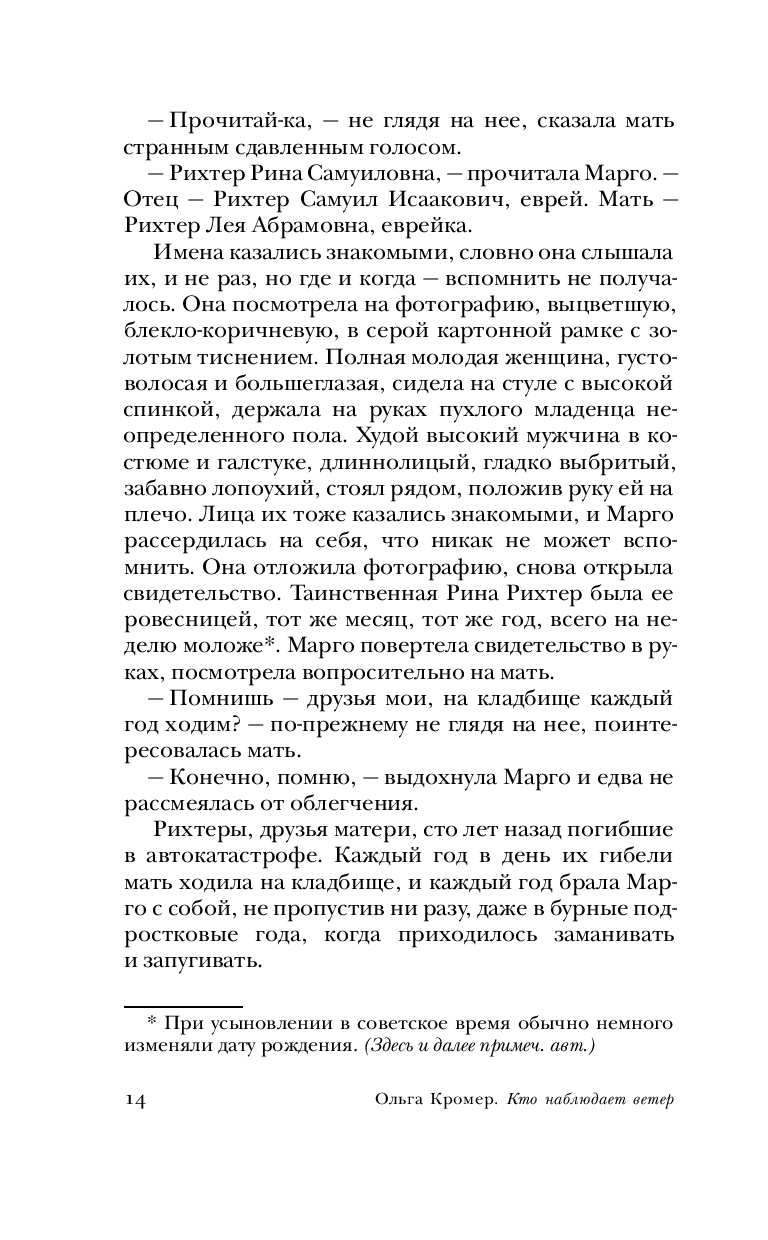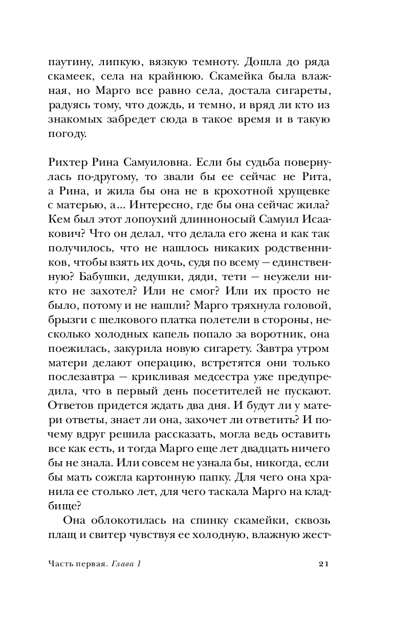 1970-е, советский провинциальный городок. Рита Бородина – молодая учительница русского и литературы – узнает, что ее взяли из дома малютки, а настоящие родители, Лея и Самуил Рихтеры, погибли при загадочных обстоятельствах. Рита начинает собственное расследование, чтобы выяснить, что же произошло двадцать три года назад, и найти своих родственников.