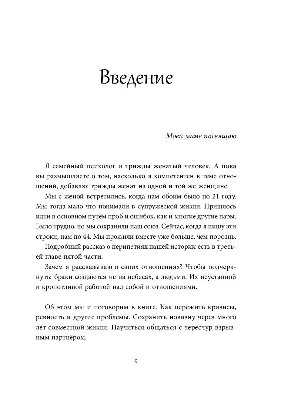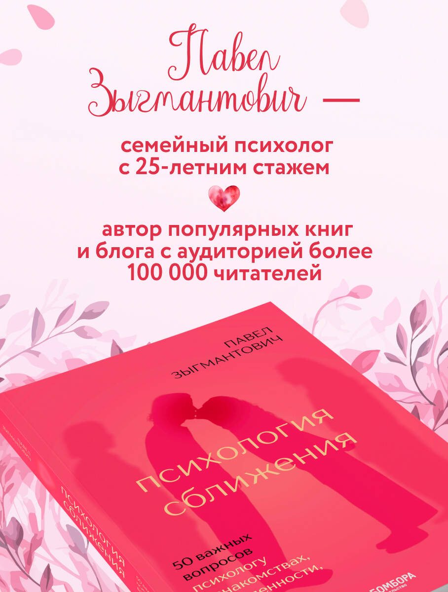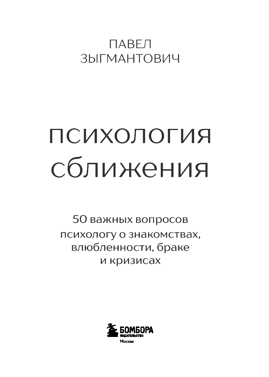 Эта книга – разговор с опытным психологом, который разберет по косточкам 50 самых насущных вопросов о любви. От первого свидания до испытаний бытом и кризисами. Павел Зыгмантович – семейный психолог с 25-летним стажем, его книги и статьи ежемесячно читают более 100 000 человек. А свой брак он заключил… трижды с одной и той же женщиной. И вместе они с 2003 года.