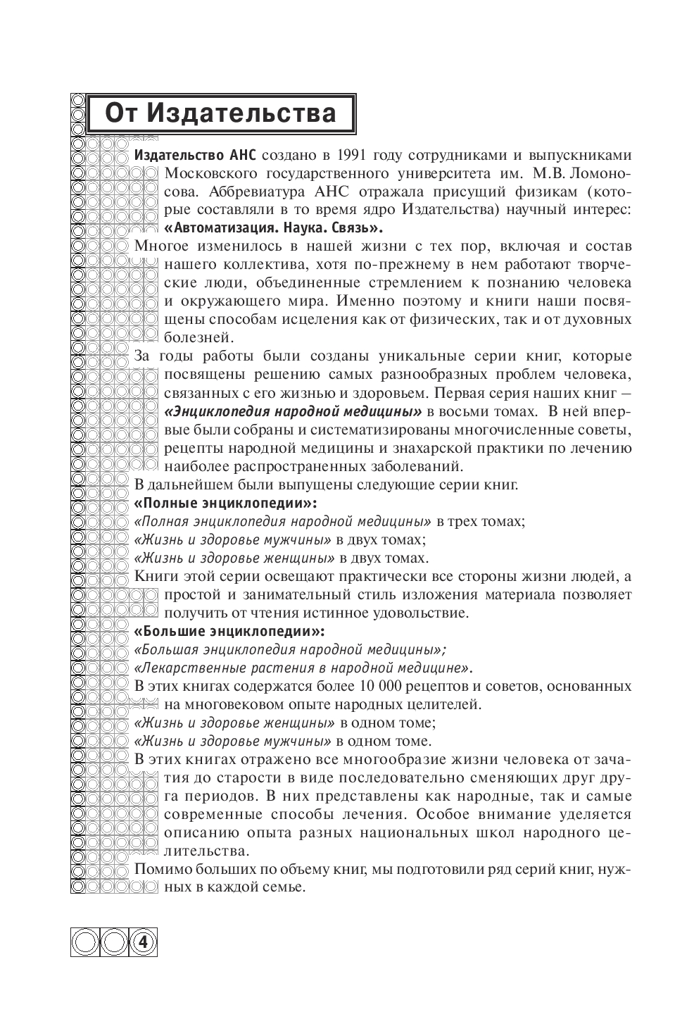 Это издание является, по существу, "вечной книгой", поскольку предлагаемые методы лечения уже эффективно служили нашим дедам и прадедам, а теперь помогут вам, вашим детям и внукам.