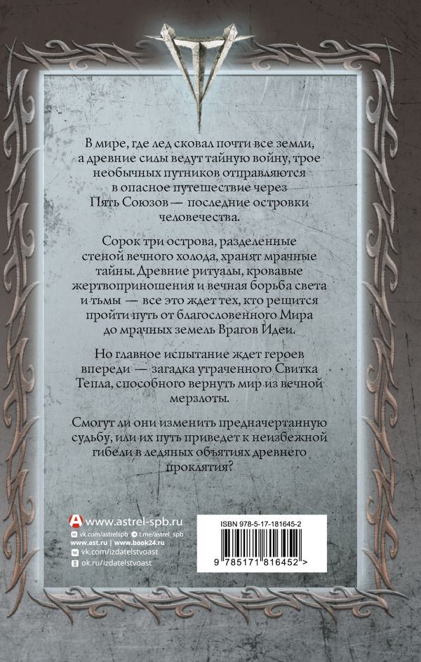 В мире, где лед сковал почти все земли, а древние силы ведут тайную войну, трое необычных путников отправляются в опасное путешествие через Пять Союзов – последние островки человечества.