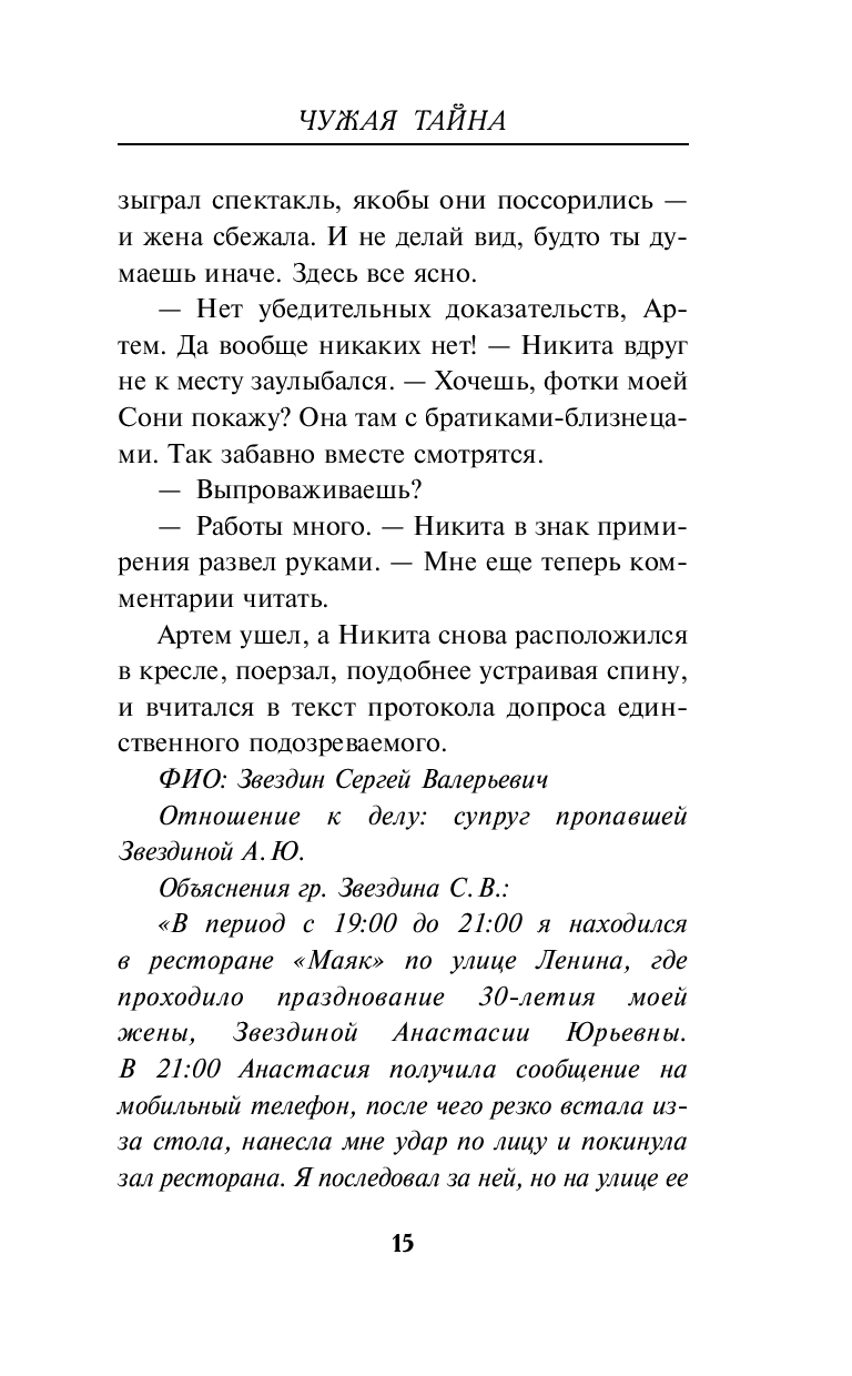 Во время празднования своего дня рождения загадочно исчезает Настя, жена бизнесмена Сергея Звездина. Гости слышали, как перед этим супруги серьезно поссорились. Инцидент быстро становится достоянием общественности. СМИ и интернет-сообщества сходятся на том, что Звездин… жестоко расправился с женой. В качестве свидетельства в сети появляется видео, где похожий на Сергея человек крадется по ночному городу. Следователь Никита по прозвищу Коломбо сомневается в виновности бизнесмена. Он уверен: того подставляют. Но кто? Сыщик начинает распутывать сложный клубок взаимоотношений в окружении Звездина. Он уже близок к разгадке, когда на фоне скандальной шумихи неожиданно раздается смертельный выстрел…