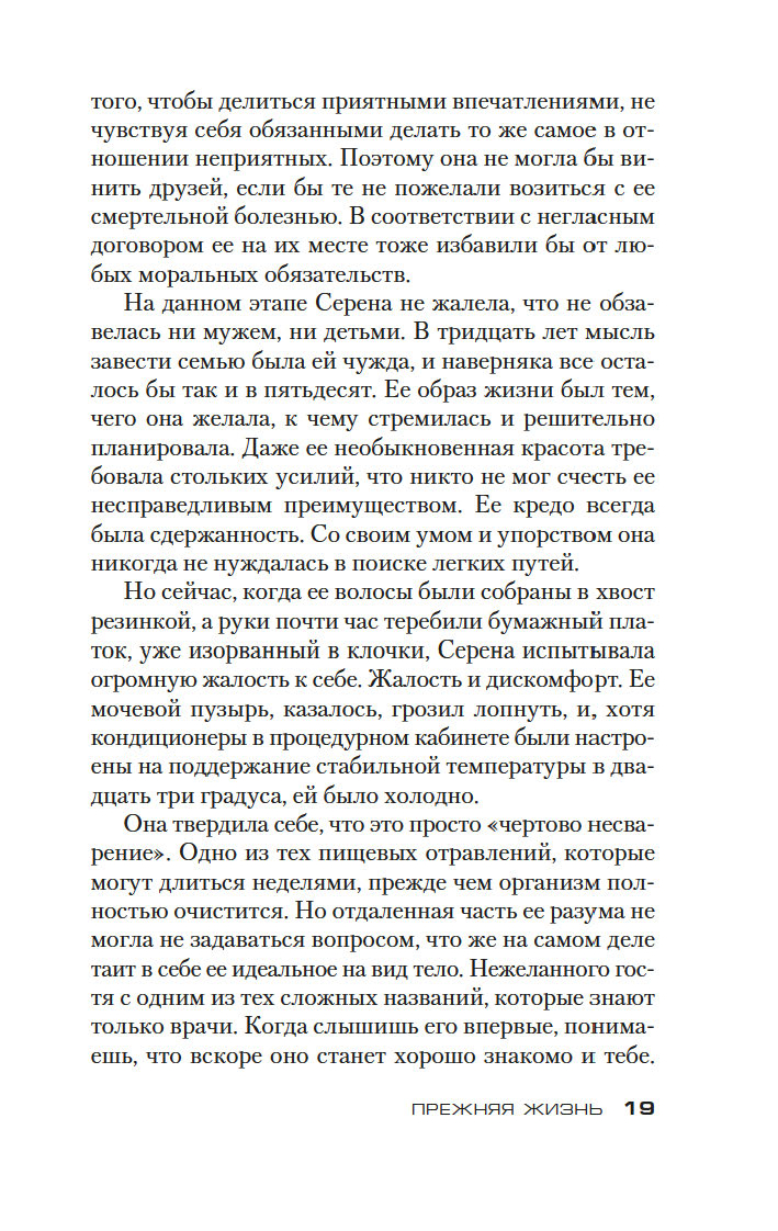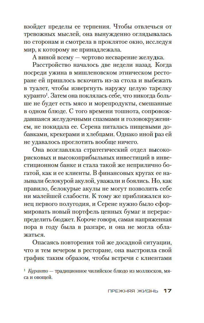 Серена никогда не видела себя в роли матери – даже после того, как у нее родилась дочь. Серена – "белокурая акула", талантливая сотрудница инвестиционного банка, самостоятельная, независимая, и никто ей не указ. Но после этого ночного пожара ее жизнь, упорядоченная и благополучная, постепенно погружается в бездонный черный кошмар. Что такое материнский инстинкт? Как так вышло, что он сильнее всего на свете? И презрения окружающих, и отчаяния. И судьбы. И огня.