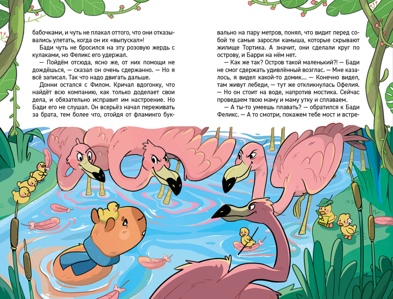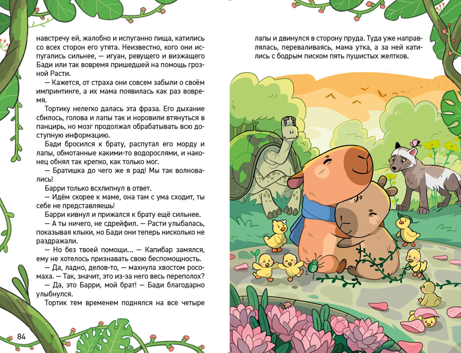 Семейство капибар в ужасе. Едва переехали на новое место, как потерялся один из малышей. Все вокруг такое новое и незнакомое, и непонятно: где искать малыша? На поиски отправляется его старший брат – настоящий юный детектив. Но справится ли он? Ему на помощь уже спешат веселые утята, старый мудрый черепах и смекалистая росомаха. Возможно, вместе они раскроют тайну исчезновения маленького капибаренка.