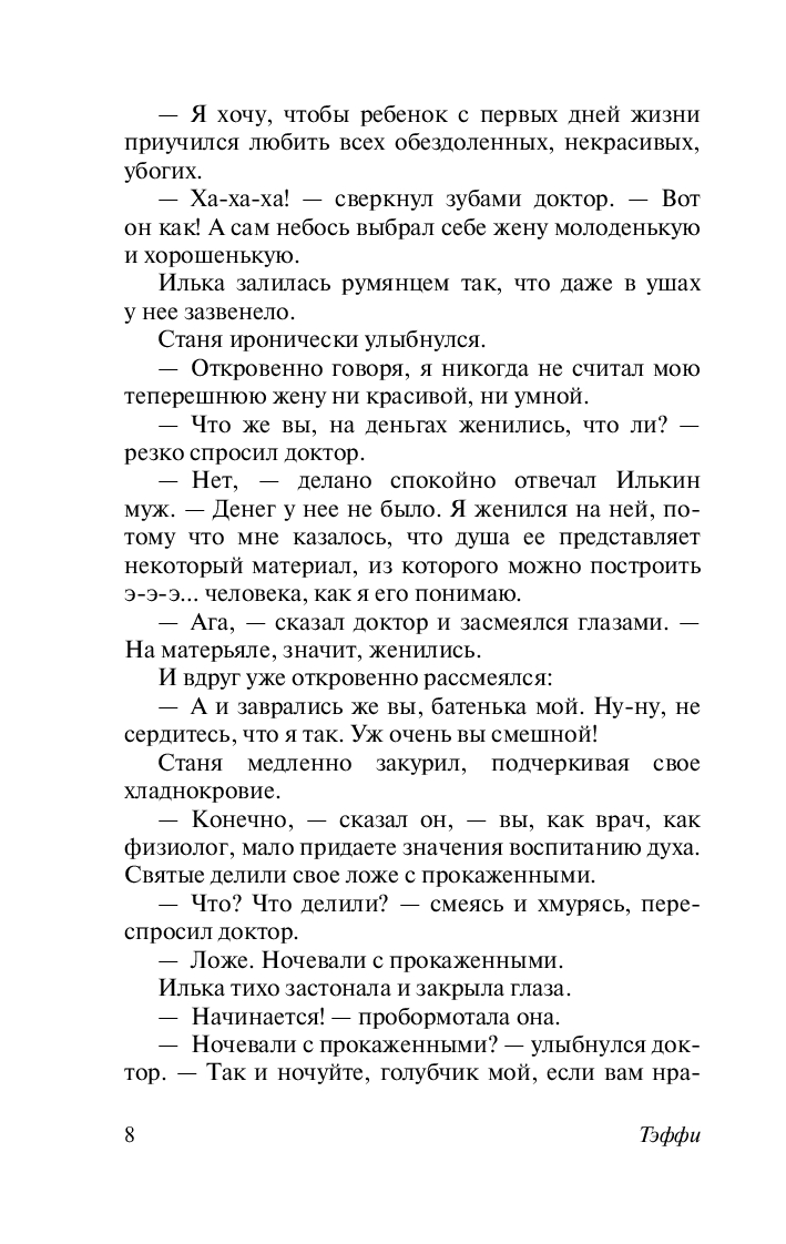 Тэффи легко и остроумно показывает весь аккорд душевных переживаний: как глубокую страсть и романтические чувства, так и нежные, трогательные моменты близости и понимания. А философская глубина ее произведений позволяет читателю не только насладиться художественным мастерством автора, но и задуматься о природе любви, ее радостях и сложностях.