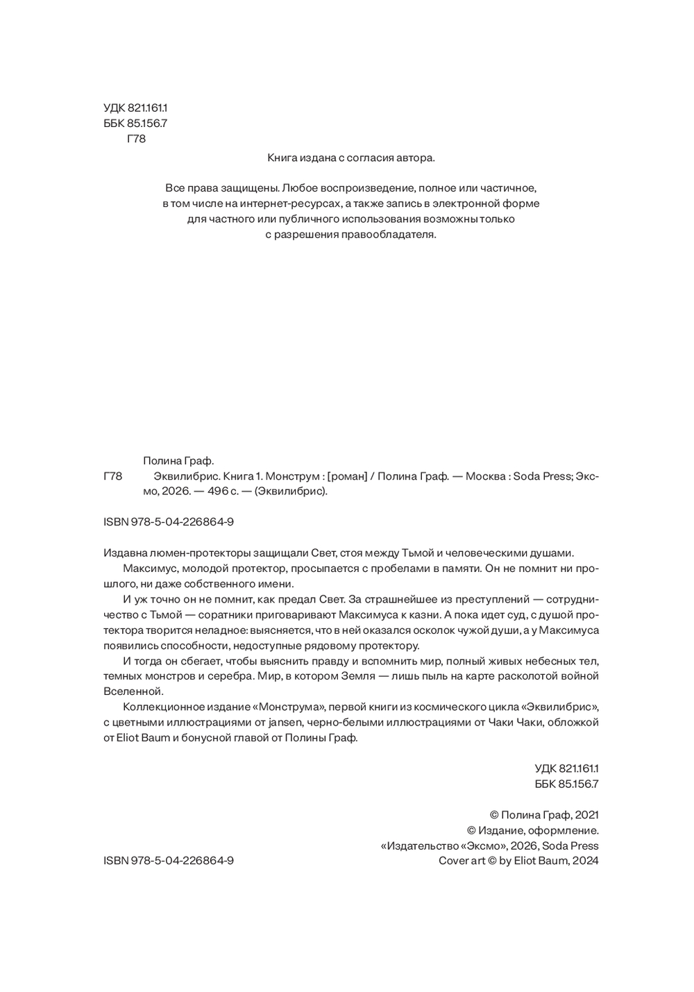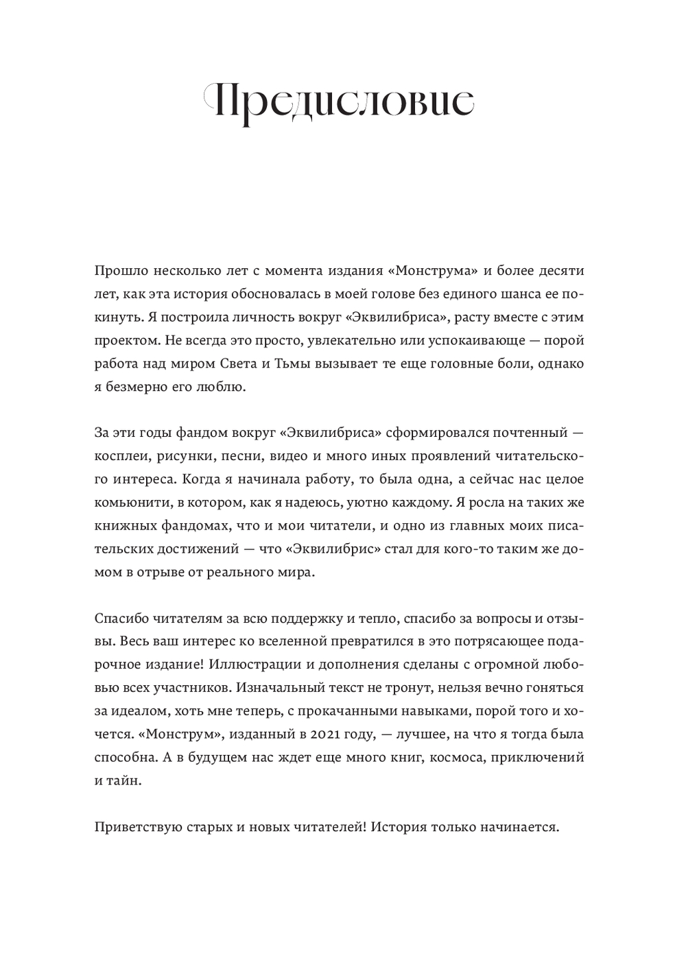 Коллекционное издание "Монструма", первой книги из космического цикла "Эквилибрис", с цветными иллюстрациями от jansen, черно-белыми иллюстрациями от Чаки Чаки, обложкой от Eliot Baum и бонусной главой от Полины Граф.