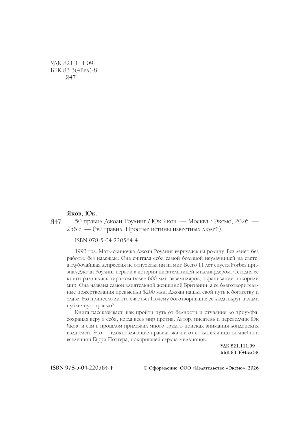 Книга рассказывает, как пройти путь от бедности и отчаяния до триумфа, сохраняя веру в себя, когда весь мир против. Автор, писатель и переводчик Юк Яков, и сам в прошлом приложил много труда в поисках внимания лондонских издателей. Это – вдохновляющие правила жизни от создательницы волшебной вселенной Гарри Поттера, покорившей сердца миллионов.