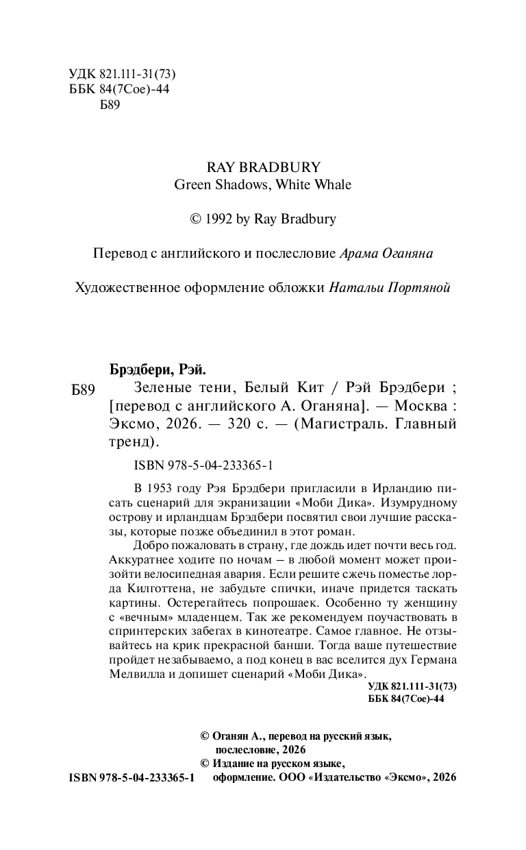 Условия бонусной программы| Название в оригинале | Green Shadows, White Whale |
