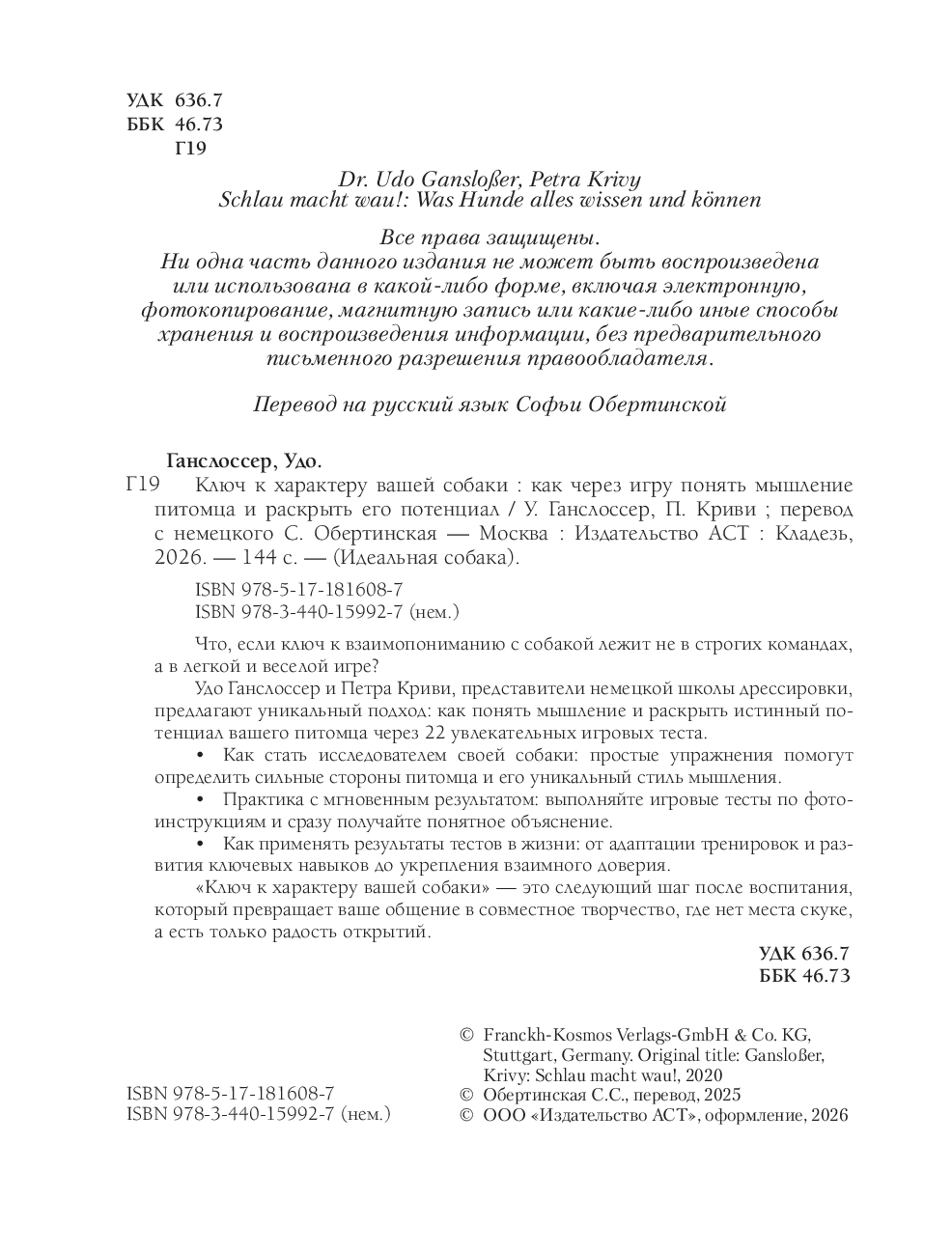 Удо Ганслоссер и Петра Криви, представители немецкой школы дрессировки, предлагают уникальный подход: как понять мышление и раскрыть истинный потенциал вашего питомца через 22 увлекательных игровых теста.