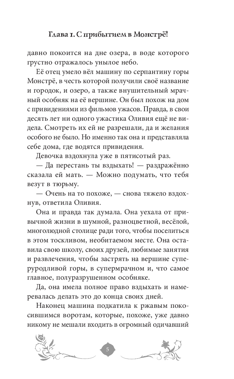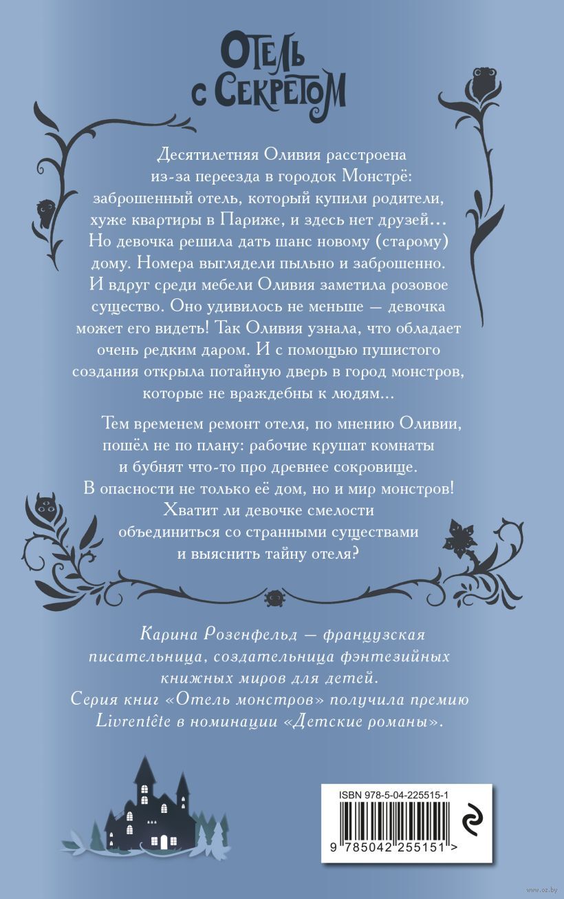 Десятилетняя Оливия расстроена из-за переезда в городок Монстрё: заброшенный отель, который купили родители, хуже квартиры в Париже, и здесь нет друзей… Но девочка решила дать шанс новому (старому) дому. Номера выглядели пыльно и заброшено. И вдруг среди мебели Оливия заметила розовое существо. Оно удивилось не меньше – девочка может его видеть! Так Оливия узнала, что обладает очень редким даром. И с помощью пушистого создания открыла потайную дверь в город монстров, которые не враждебны к людям...