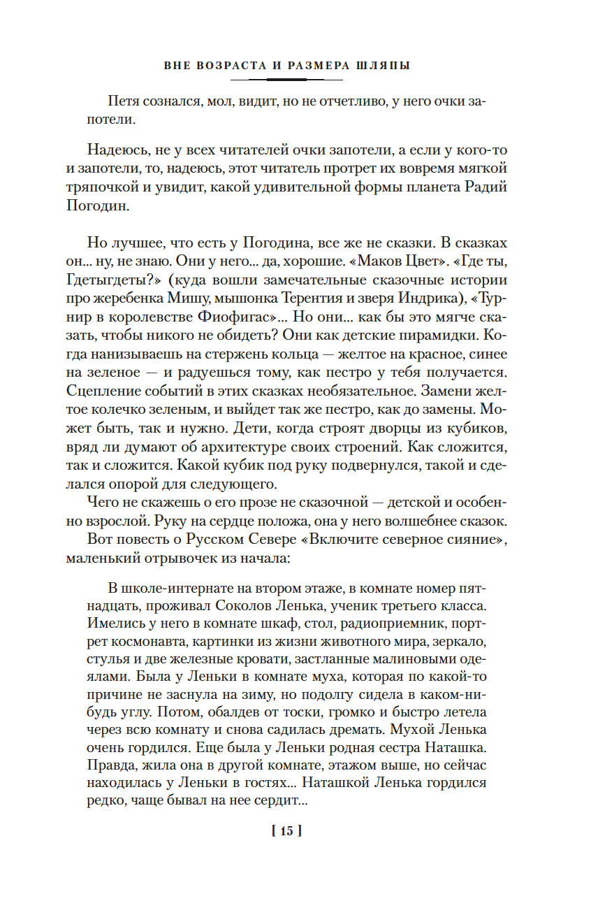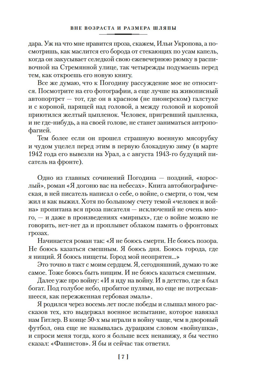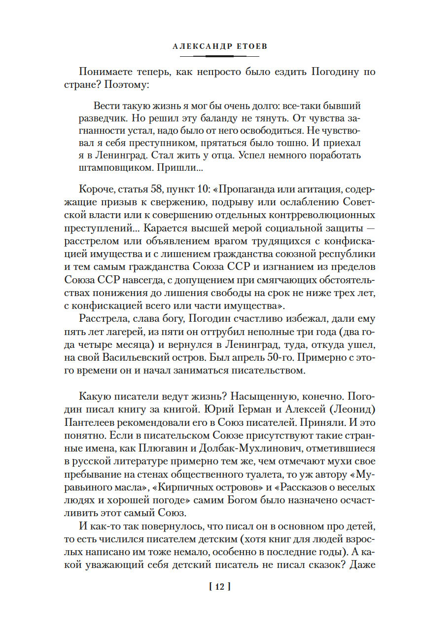 Писатель Радий Погодин пережил в жизни многое – умирал в блокадном Ленинграде, воевал (награжден орденами – двумя Славы и двумя Красной Звезды), в боях дошел до Берлина (его блокадные и военные впечатления легли в основу автобиографического романа "Я догоню вас на небесах", одной из лучших книг в нашей литературе о войне и Ленинградской блокаде), после войны попал во «враги народа» и отмотал срок в лагере по печально известной статье УК… Вот такой был у него "богатый" жизненный опыт. В литературу Погодин пришел в 1950-х. Начинал с книг для детей: "Кирпичные острова", "Рассказы о веселых людях и хорошей погоде", "Трень-брень"… Позже, в 1970–1980-е, в его произведениях, даже в детских, все чаще и все отчетливее звучит тема войны, и для писателя с его биографией это очень понятно – прошлое возвращается, уже в книгах. Но что важно: несмотря на пережитое, книги Погодина наполнены теплым светом и добротой. А еще он умеет подбирать и расставлять слова так, что происходит чудо – то обыкновенное чудо, когда слова в книге начинают играть, светиться всеми красками жизни, отзываясь в сердце читателя.