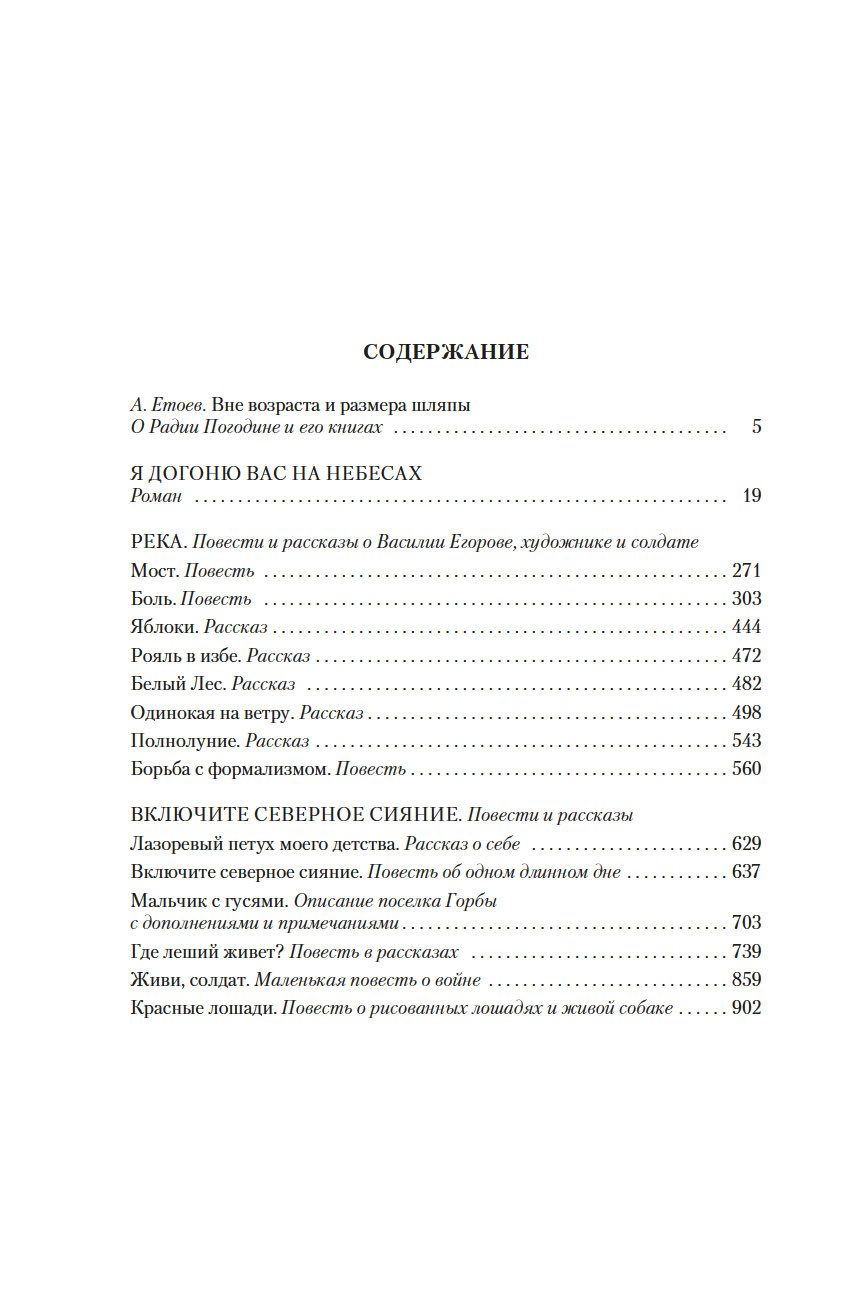 Кроме романа "Я догоню вас на небесах", одной из вершин в творчестве писателя, в настоящий том полностью вошел цикл полуреалистических-полуфантастических повестей и рассказов о Василии Егорове, художнике и солдате ("Река"), и другие лучшие образцы погодинской прозы.
