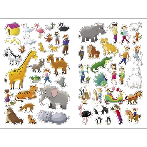 Добро пожаловать в зоопарк! Здесь можно увидеть животных со всего света. Белые медведи и гориллы, жирафы и пингвины, слоны и носороги – приклеивать их так интересно!