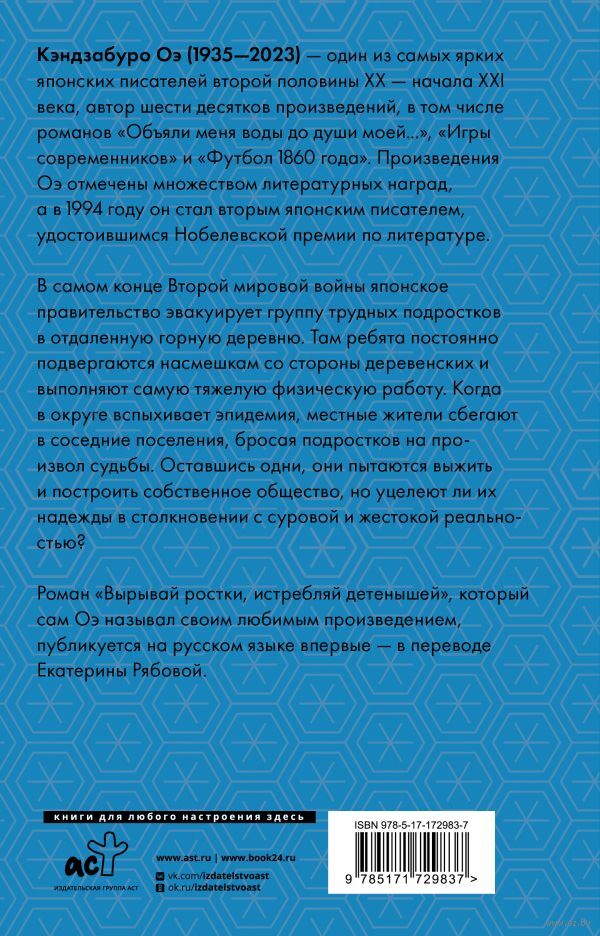 Роман "Вырывай ростки, истребляй детенышей", который сам Оэ называл своим любимым произведением, публикуется на русском языке впервые – в переводе Екатерины Рябовой.