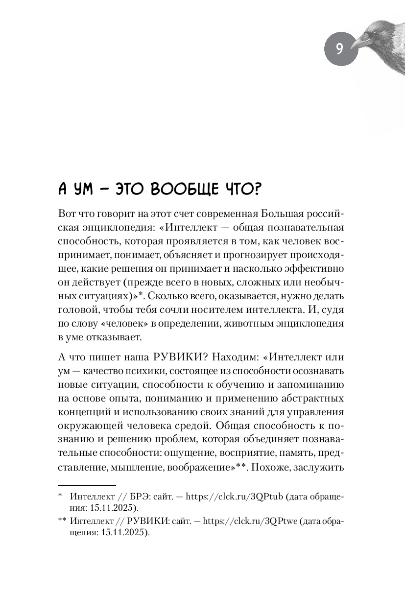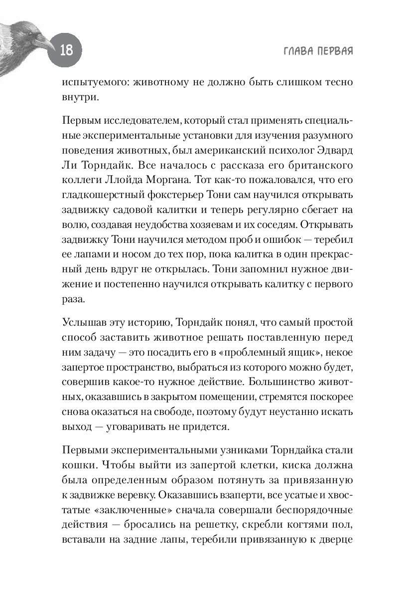 Про особую сообразительность ворон знают все. Многие не раз наблюдали, как каркающая вредина выпотрошила урну, ограбила кота, обворовала птичью кормушку, расстегнула молнию на рюкзаке, стащила из-под носа ключи или кусок пиццы. А многим знакома их слаженная работа в небольших "криминальных группировках" и склонность к невинным развлечениям типа катания с горки и качания на проводах. Неужели эти птицы действительно настолько умны, что порой кажутся не глупее нас с вами? Или, может быть, их поведение – это просто результат работы каких-то генетических программ или сложных инстинктов? Можем ли мы всерьез говорить о вороньем интеллекте или это только наивные домыслы дилетантов?