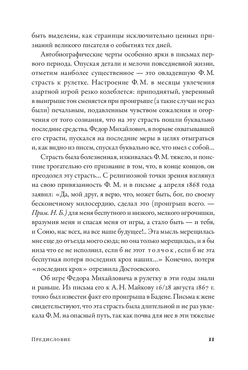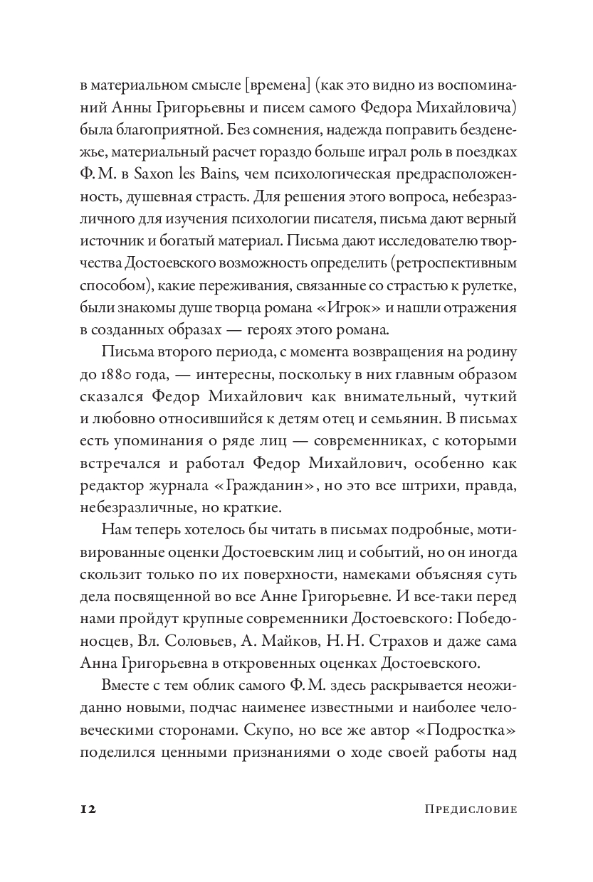 Перед нами настоящий эмоциональный дневник писателя. В его письмах, как в зеркале, отражаются не только детали жизни и быта Достоевских, но и вся переживаемая ими гамма настроений: от детского восторга до глубочайшего отчаяния, от абсолютной растерянности до вдохновляющей надежды. Они показывают, на что бывают способны люди в моменты слабости. Но также они дают понимание того, что взаимное уважение и доверие в отношениях с любимым человеком помогают преодолевать самые страшные ситуации и самые серьезные трудности.