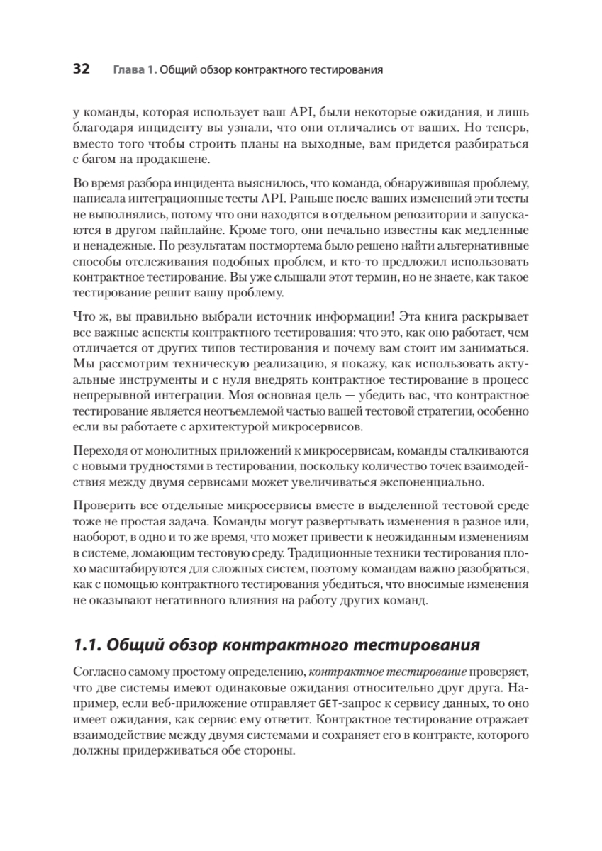 Книга "Контрактное тестирование в действии" поможет командам внедрить этот вид тестирования для микросервисов и других систем, основанных на API. Узнайте, как интегрировать контрактное тестирование в процесс разработки, и рассмотрите практические методы внедрения контрактных тестов в ваш стек технологий и практик. Научитесь применять передовые инструменты – такие как Pact, PactFlow и GitHub Actions – чтобы построить собственную инфраструктуру контрактных тестов, и создавайте контрактные тесты, ориентированные на потребителя (CDCT), для REST и GraphQL API, а также интегрируйте их в процесс CI/CD.