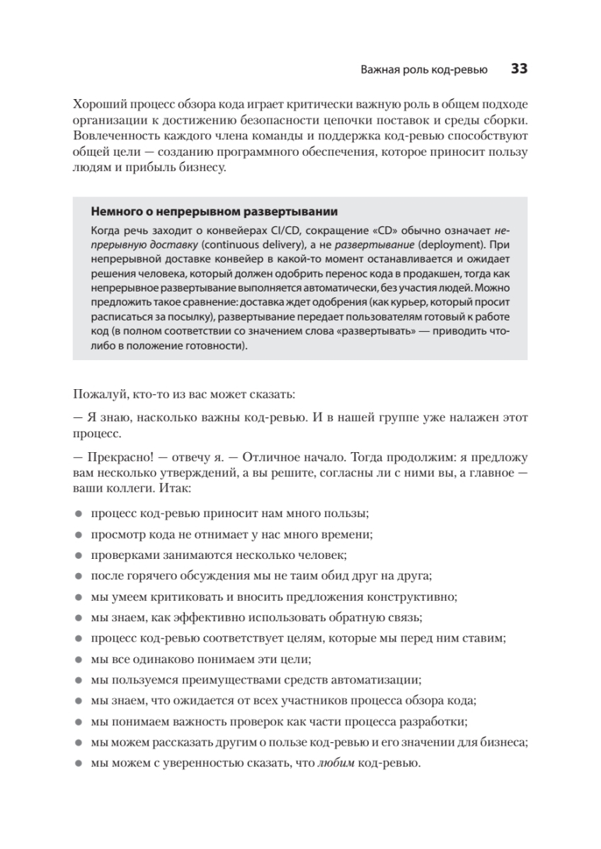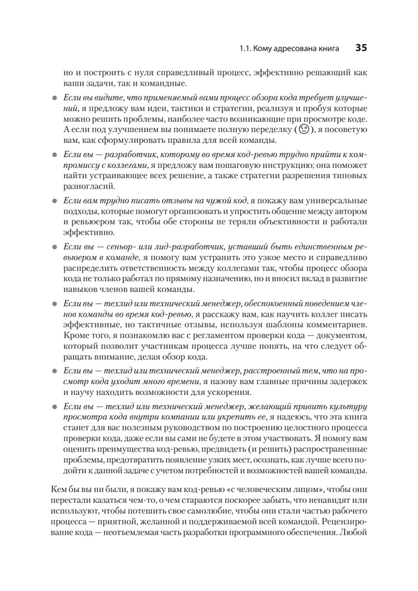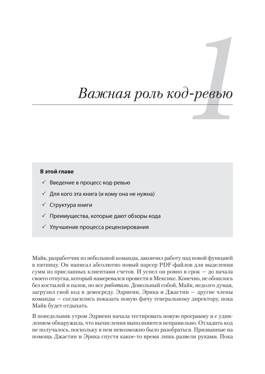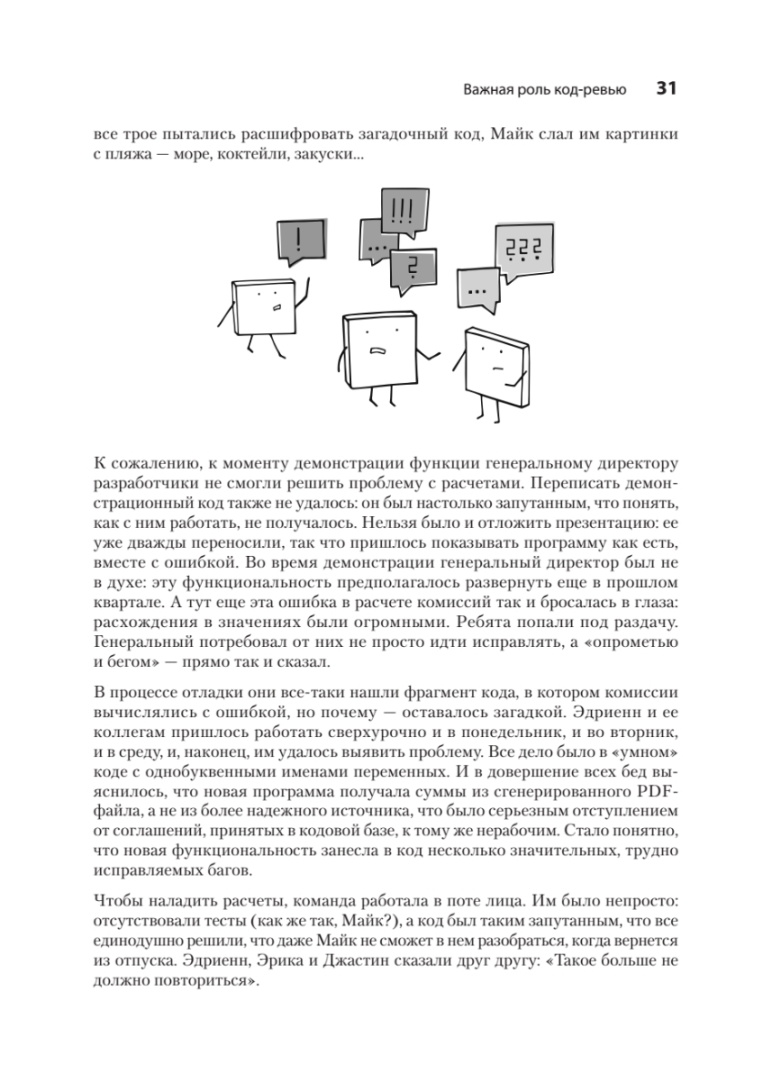 Научитесь здравому и внимательному подходу к код-ревью, который одной из первых стала применять автор книги – Эдриенн Браганца. Узнайте, как создать в команде доброжелательную атмосферу, четко согласовать цели код-ревью и ожидания от него, как подготовиться к любым изменениям и препятствиям, с которыми можете столкнуться. Освойте практики, которые можно адаптировать к тому, как работает ваша команда, познакомьтесь со множеством возможностей и решений, надежных сценариев, а также примеров из реальной жизни. Вскоре вы сможете построить высокоэффективный процесс код-ревью, который сделает ваш код лучше, а вашу команду сильнее.
