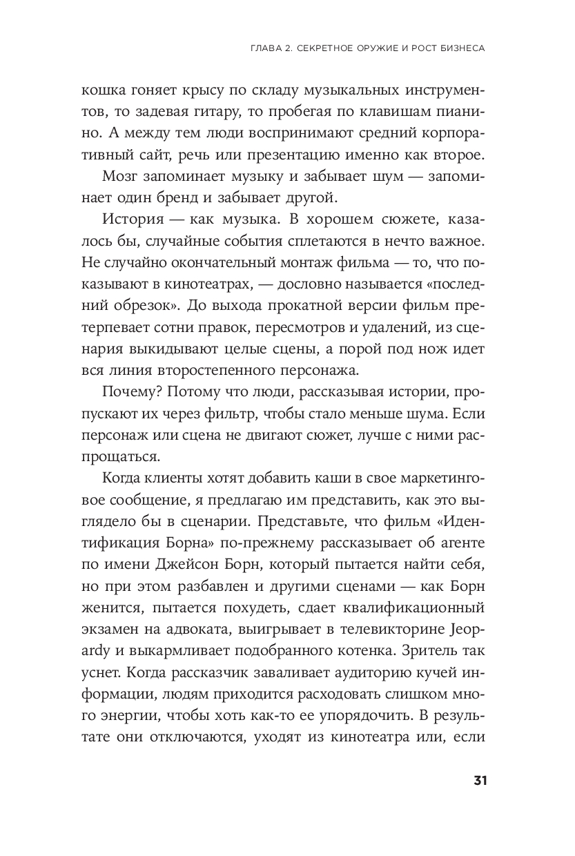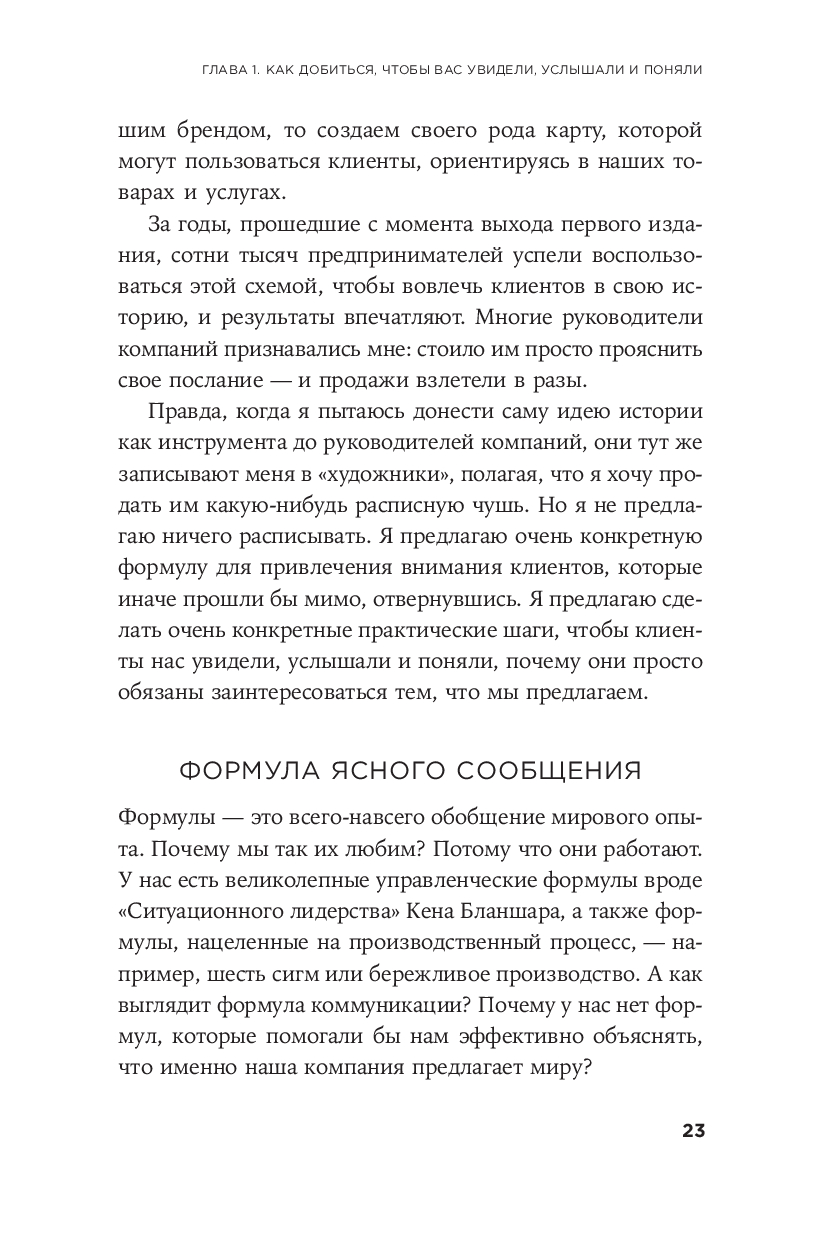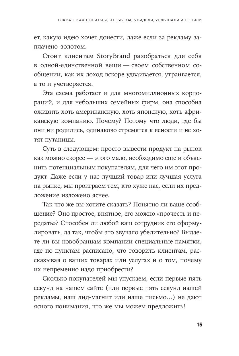 Вы узнаете, как вам следует рассказывать о том, кто вы, чем вы занимаетесь и какую уникальную ценность вы приносите. Применяя концепцию StoryBrand, ваш бренд станет заметным, так что клиенты не просто услышат и поймут вас – они запомнят и полюбят ваш бренд всей душой и будут верны вам долгие годы.