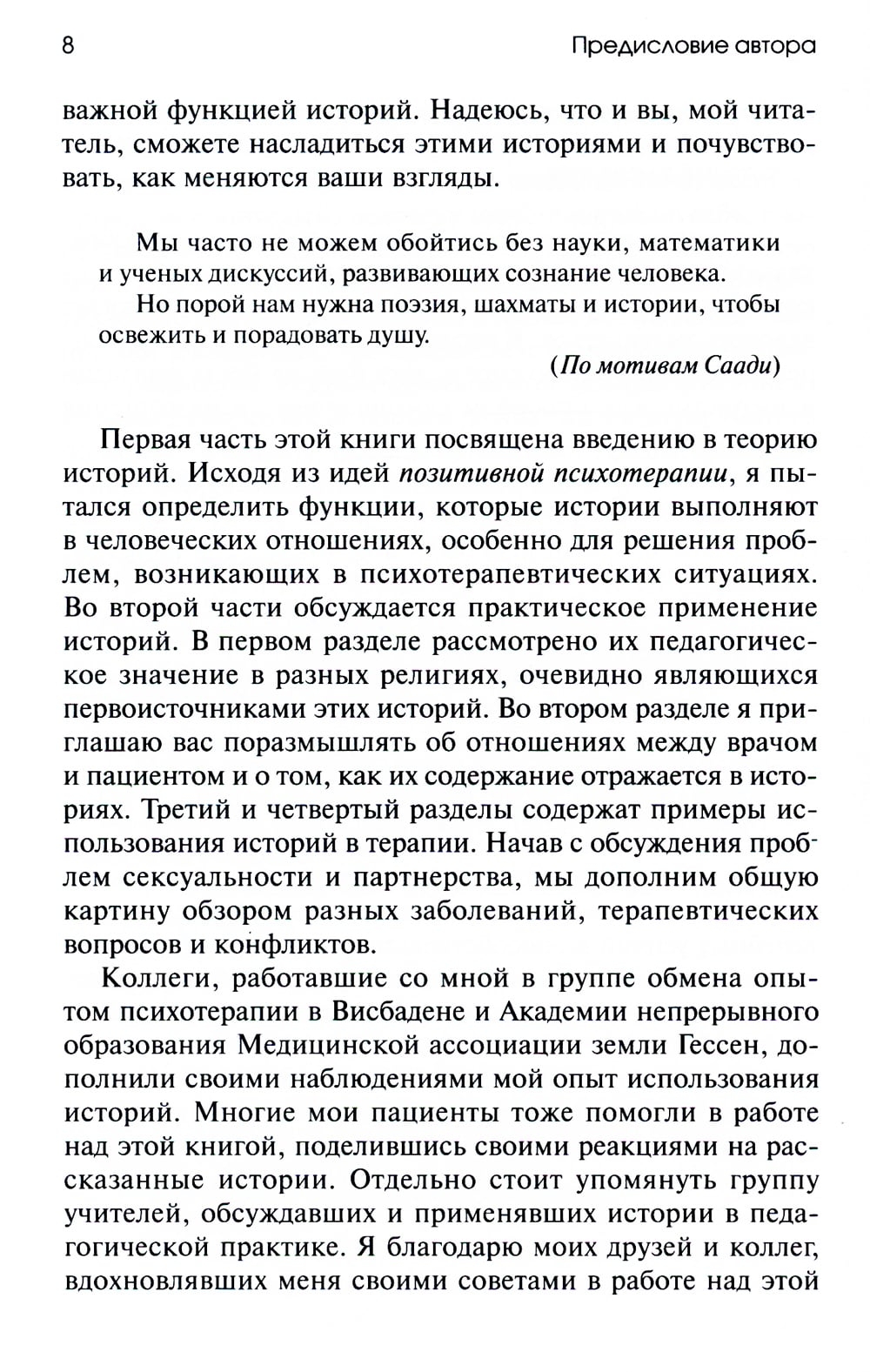 В книге немецкого врача-психотерапевта, основателя позитивной (от лат. positum – имеющее место) психотерапии Н. Пезешкиана собрано около ста восточных историй, сопровождаемых примерами из психотерапевтической практики. Наряду с необычайной занимательностью, поэтичностью и яркостью изложения истории Востока содержат нечто неожиданное и непредвиденное.