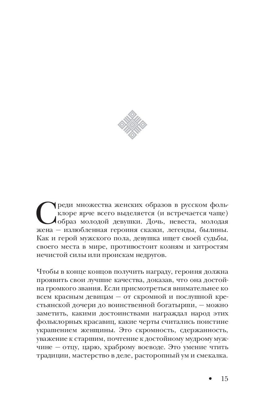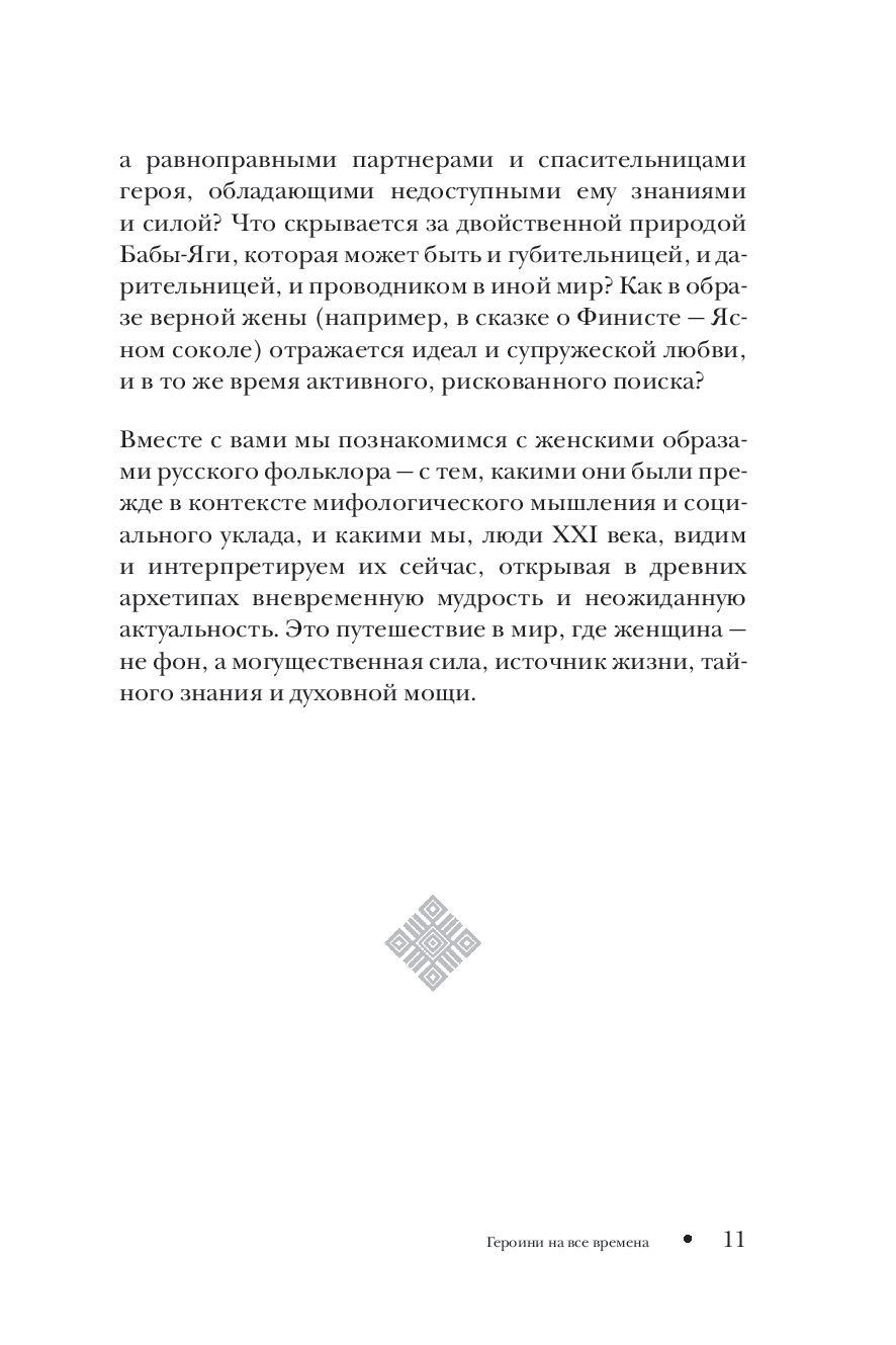 Эта книга расскажет о том, как в русских сказках, героическом эпосе и мифологии воплощается многогранность женственности: послушная дочь, верная жена, коварная ведьма, загадочная русалка или могущественная богиня. Через них передаются важнейшие ценности, уроки и традиции, которые веками формировали представления о красоте, силе и женственности.