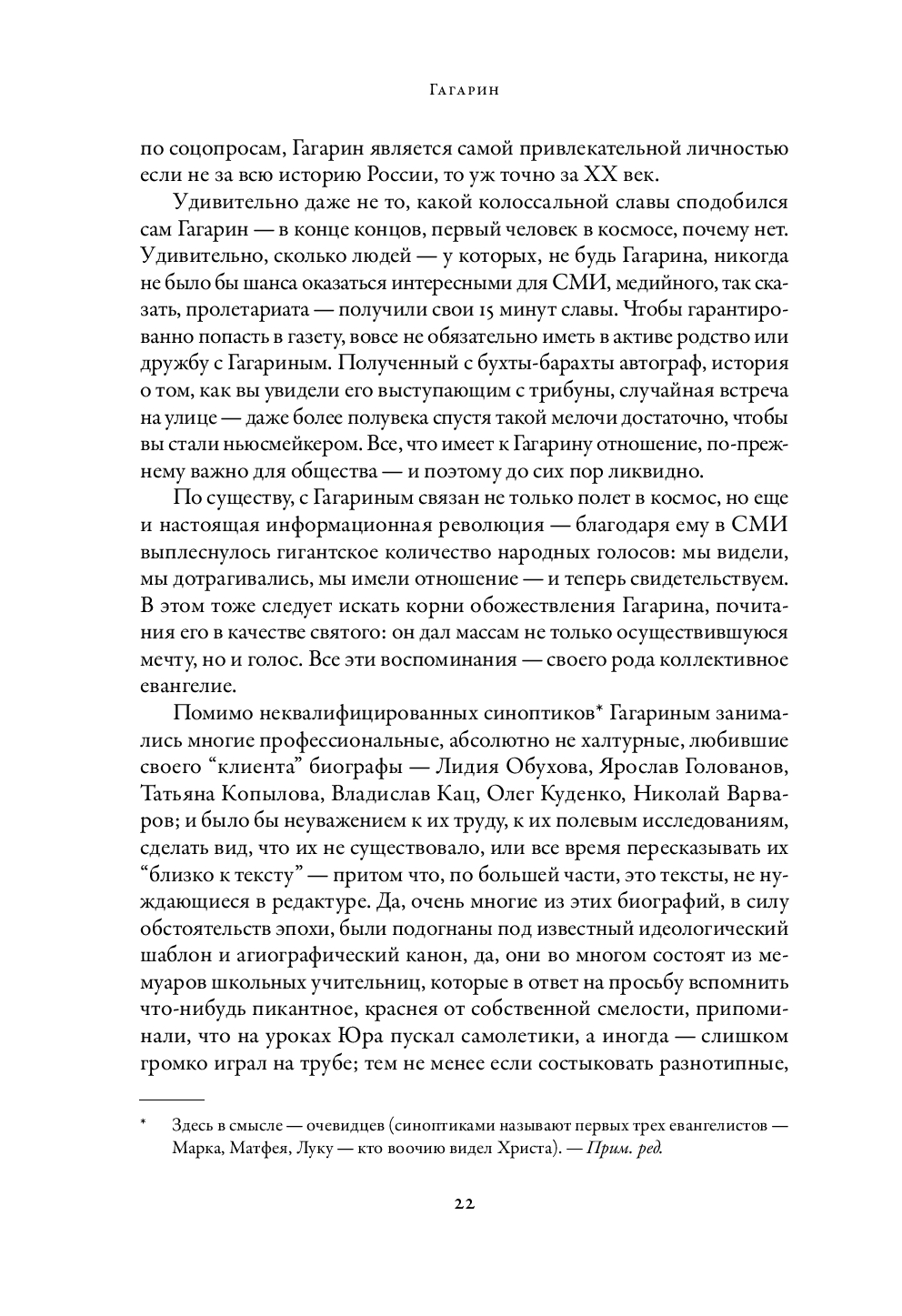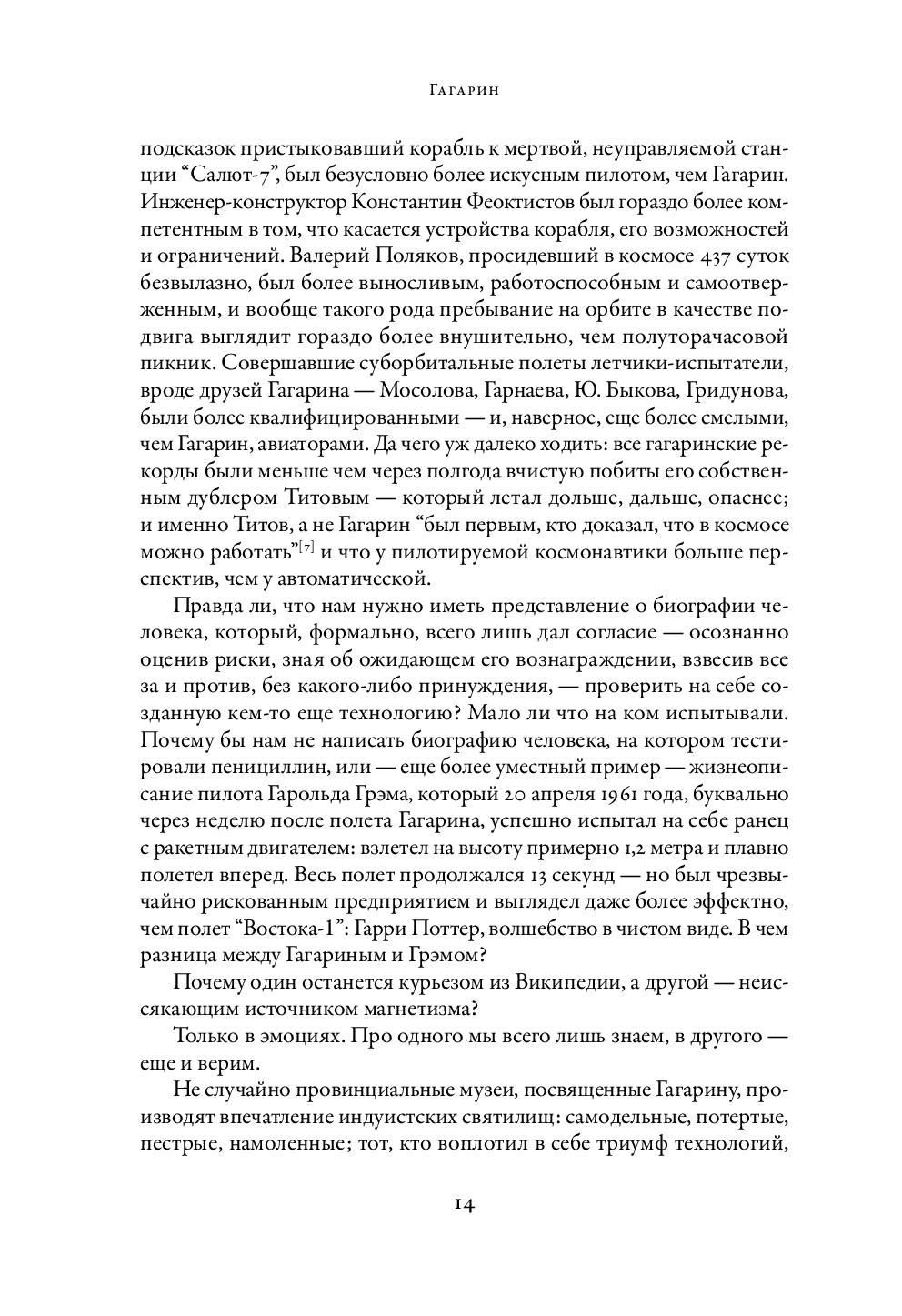 Юрий Алексеевич Гагарин стал Первым в Космосе, готовился к полету на Луну – и погиб в 34 года. Всякая биография того, кто воплотил в себе коллективные представления об идеальных национальных чертах, неизбежно напитана горечью: он-то да – а вот мы? За ним – не углядели, до него – не дотянули, без него – такого наворотили...