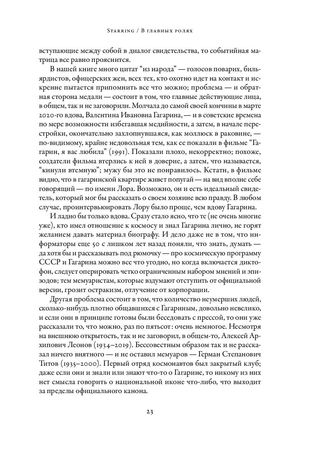 Хроника жизни Гагарина (1934-1968) и реконструкция его мировоззрения и мнений основаны на личных интервью с близкими друзьями главного героя, архивных документах, мемуарах очевидцев событий и журналистских материалах.