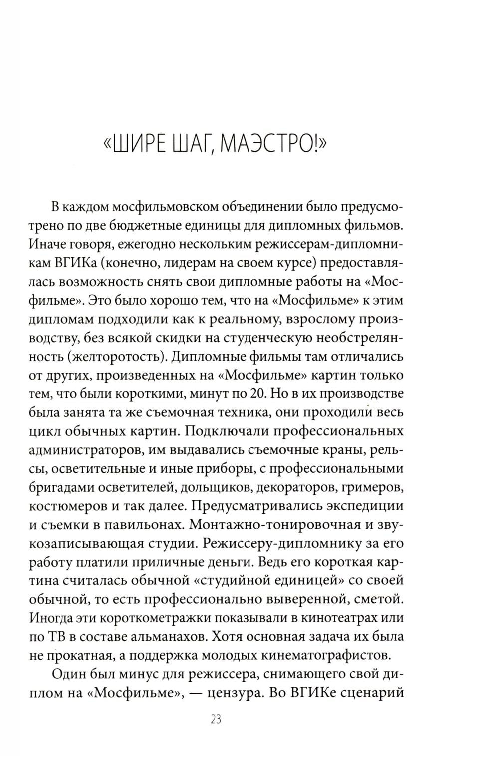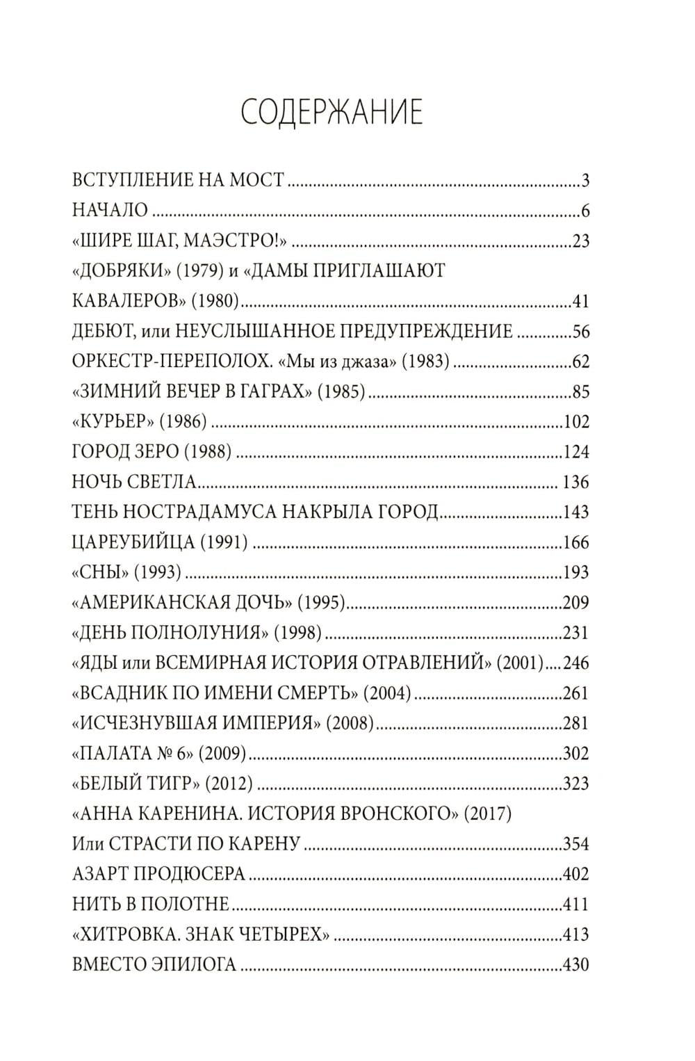 В этой книге есть всё, способное сделать ее бестселлером. Рассказ сына об отце – консультанте Брежнева и Горбачева. Конспирология фильма "Город Зеро": что это – зашифрованное предупреждение о геополитической катастрофе? Мистическое предсказание гибели СССР? Путь к славе – от шумного успеха "Мы из джаза" до "Курьера", которому Де Ниро требовал дать главный приз ММКФ. "Цареубийца" – рубеж двух эпох. "Сны" – бесстрашная сатира на ельцинское правительство. Личная драма – как импульс снять "Американскую дочь". Трудное возрождение киноконцерна "Мосфильм". И военно-фантастический блокбастер "Белый тигр", ставший рекордсменом по просмотрам в Сети!