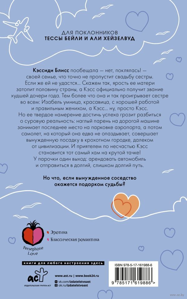 Кэссиди Блисс пообещала – нет, поклялась! – своей семье, что точно не пропустит свадьбу сестры. Если же ей не удастся… Скажем так, ярость ее матери затопит половину страны, а Кэсс официально получит звание худшей дочери года. Тем более что она и так проигрывает сестре во всем: Изабель умница, красавица, с хорошей работой и правильным женихом, а Кэсс… ну, просто Кэсс.