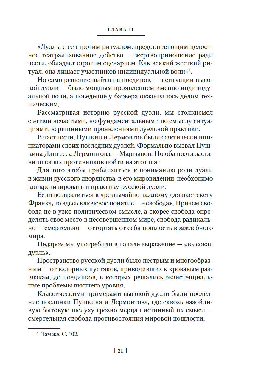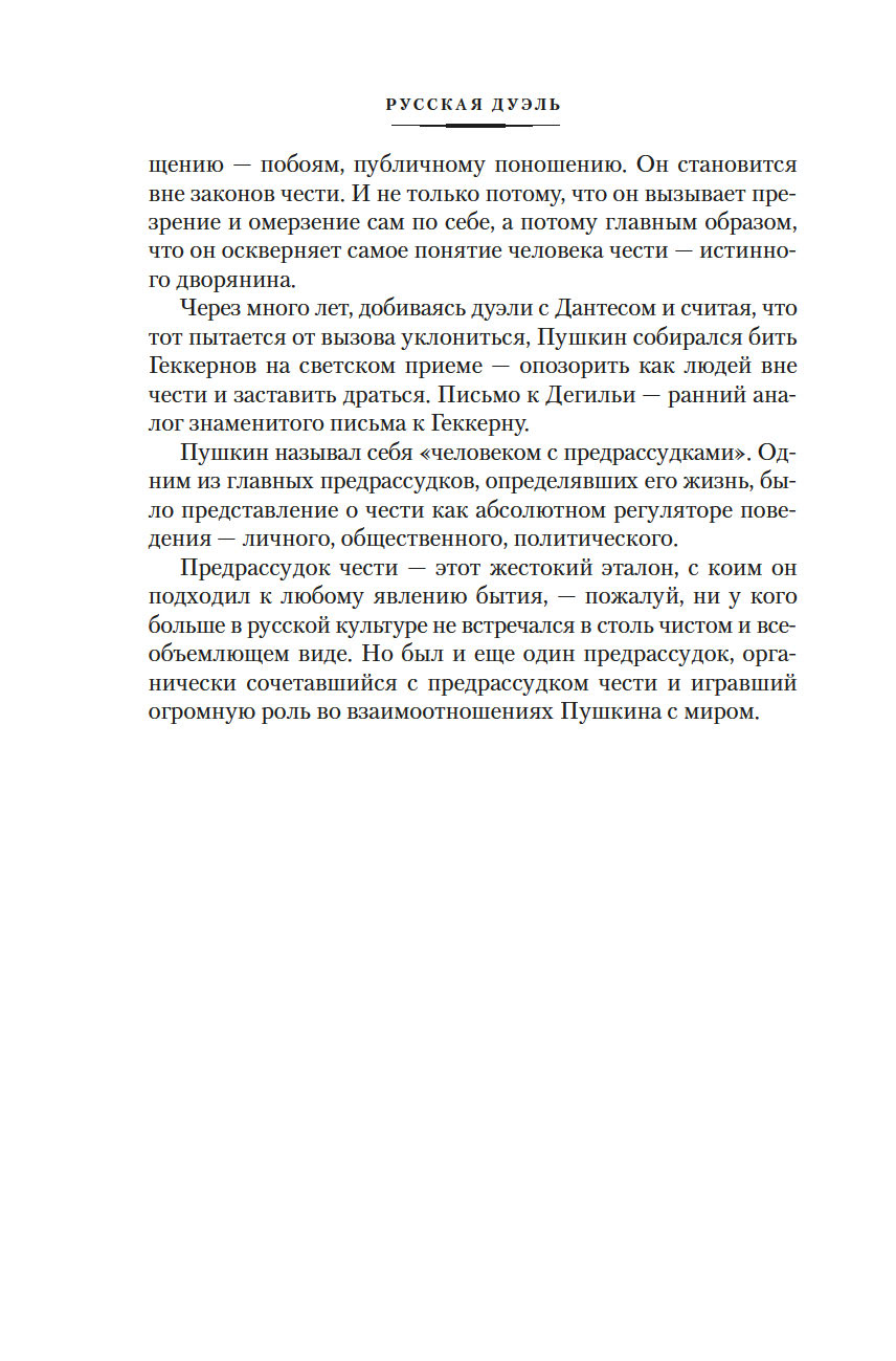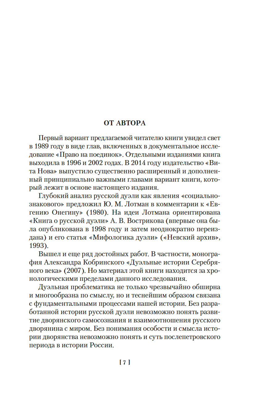 "Русская дуэль: Философия, идеология, практика" посвящена важнейшему для дворянской культуры феномену дуэльного поединка как решающего способа отстаивания чести. На материале архивных документов и мемуарных свидетельств Я. А. Гордин прослеживает историю русской дуэли – от эпохи Екатерины II, времени первых поединков, до царствования Александра III, когда дуэльная традиция уже угасала. Известные бретеры и дуэлянты, различные причины конфликтных ситуаций и различные условия дуэлей, попытки властей запретить поединки чести – все это создает яркую картину дворянского быта ХVIII-ХIХ веков.