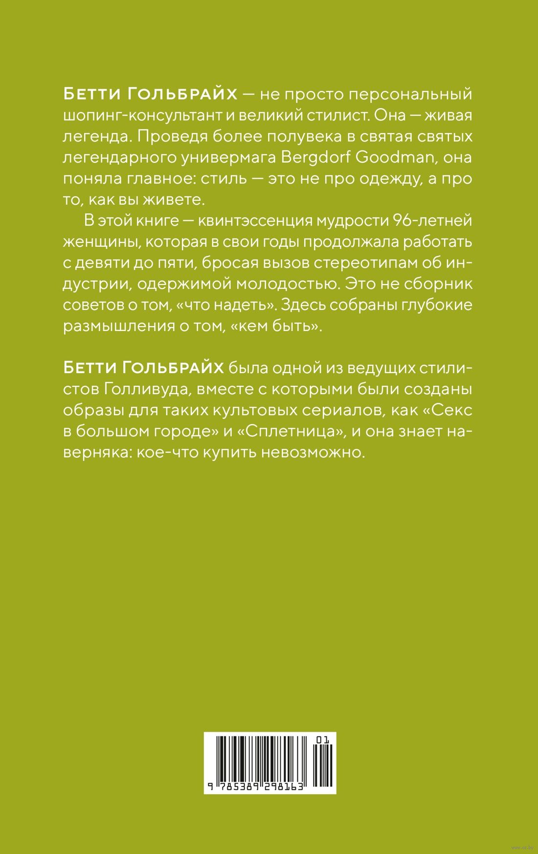 В этой книге она делится не секретами моды, а секретами стойкости. Она была домохозяйкой, а потом к ее советам прислушивались ведущие стилисты Голливуда. Бетти знает: самый важный наряд – это самоощущение и уверенность. Она научит вас быть собой, находить утешение в простых ритуалах, с достоинством принимать вызовы судьбы и времени и ценить долговечное – в вещах, в работе, в отношениях.