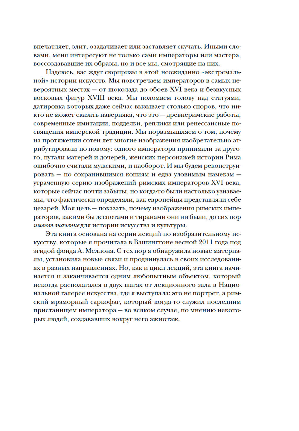 Но главный вопрос книги – почему и зачем вновь и вновь мастера и заказчики обращались к образам цезарей тогда, когда уже давно не существовало Римской империи – страсть к коллекционированию? заявление о политической программе? Вместо пресловутой "парадной" демонстрации императорских особ Мэри Бирд предлагает нам глубокое прочтение самых сложных портретов власти из когда-либо созданных великими мастерами – Тицианом и Веронезе, Мантеньей и Мемлингом… вплоть до концептуальных работ наших современников. В то же время автор по-новому высвечивает, казалось бы, и такие простые и понятные произведения целых поколений ткачей, краснодеревщиков, златокузнецов и граверов.