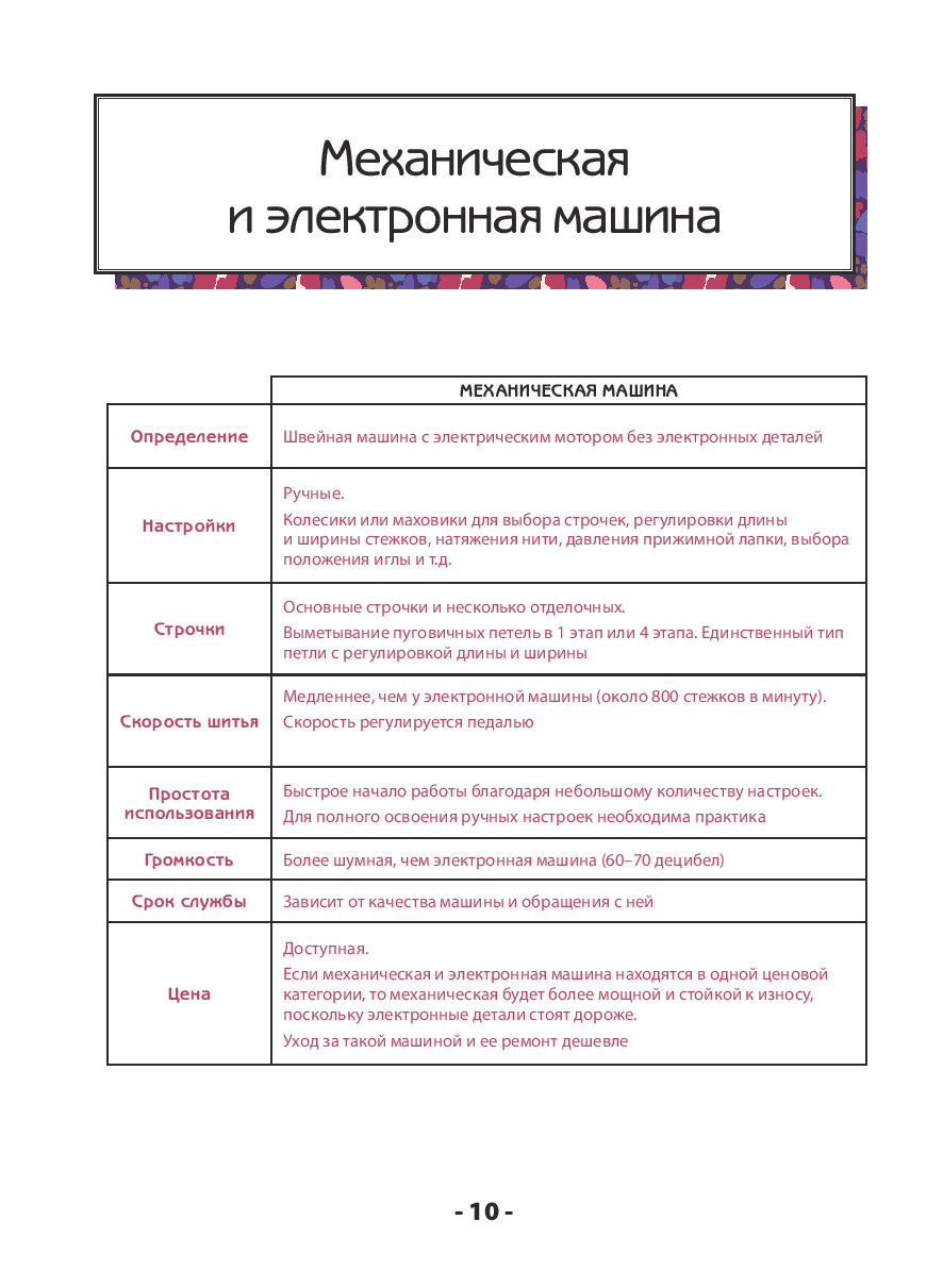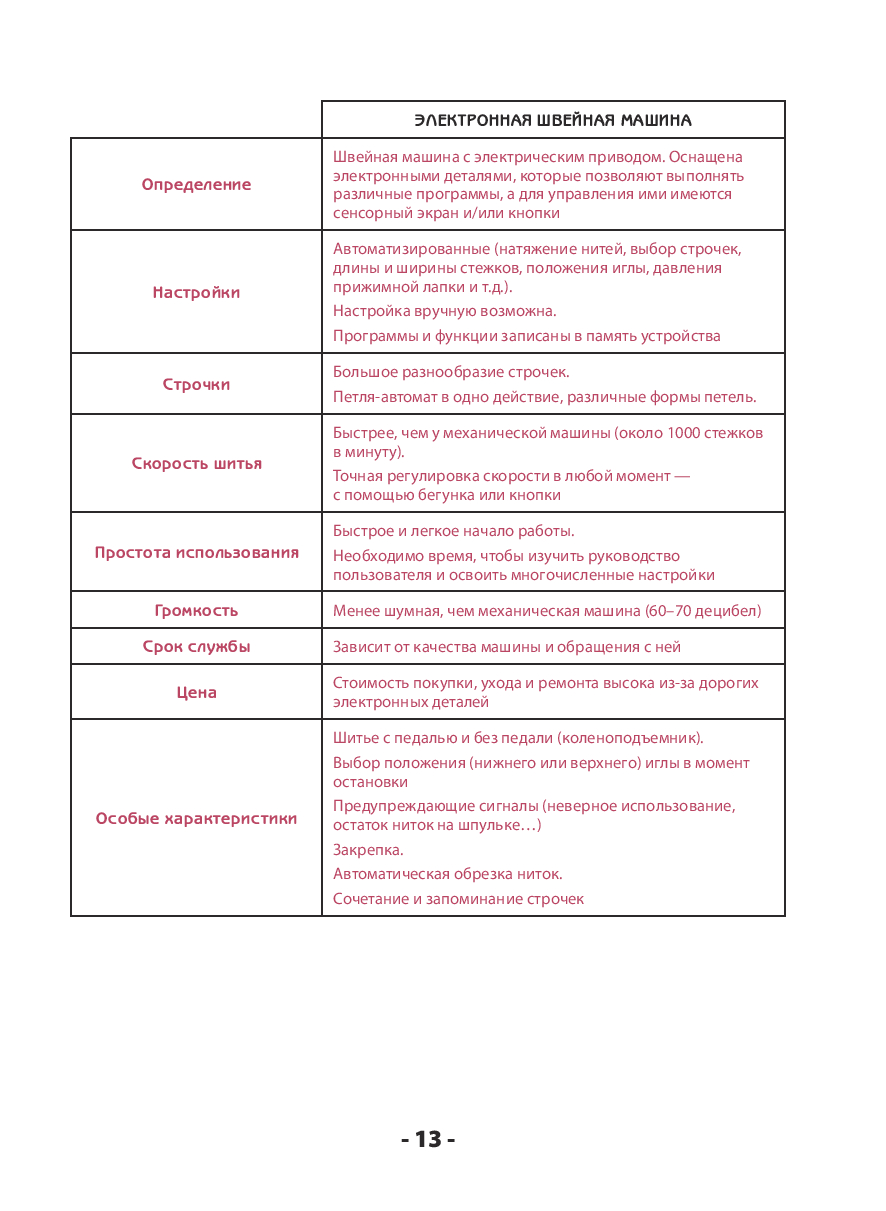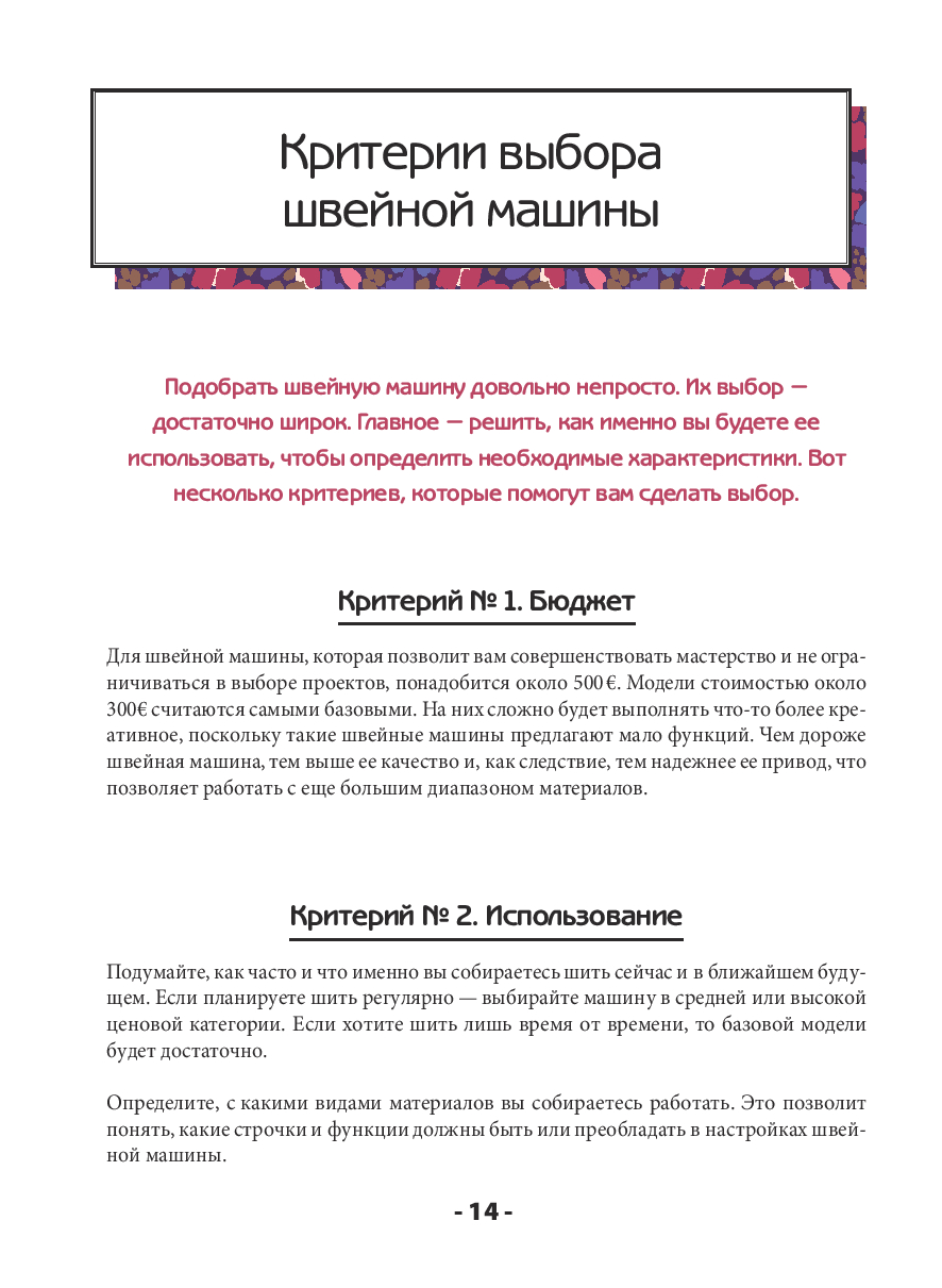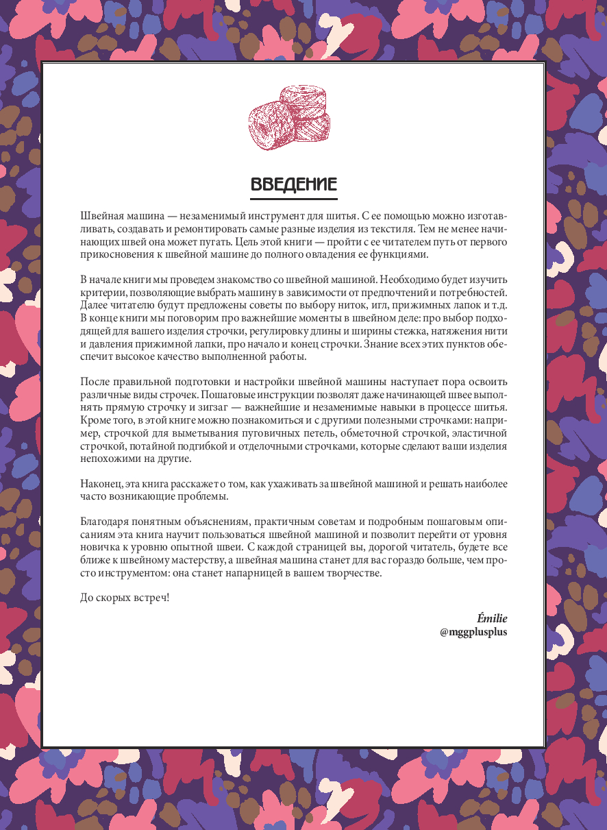 Материал выстроен логично и последовательно, поэтому книга подходит как для новичков, так и для тех, кто уже работал со швейной машиной, но хочет систематизировать знания. Четкая структура позволяет использовать ее и как учебник, и как удобный справочник, к которому можно возвращаться в процессе работы.