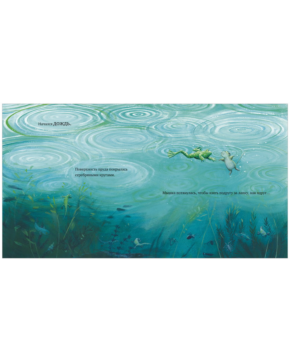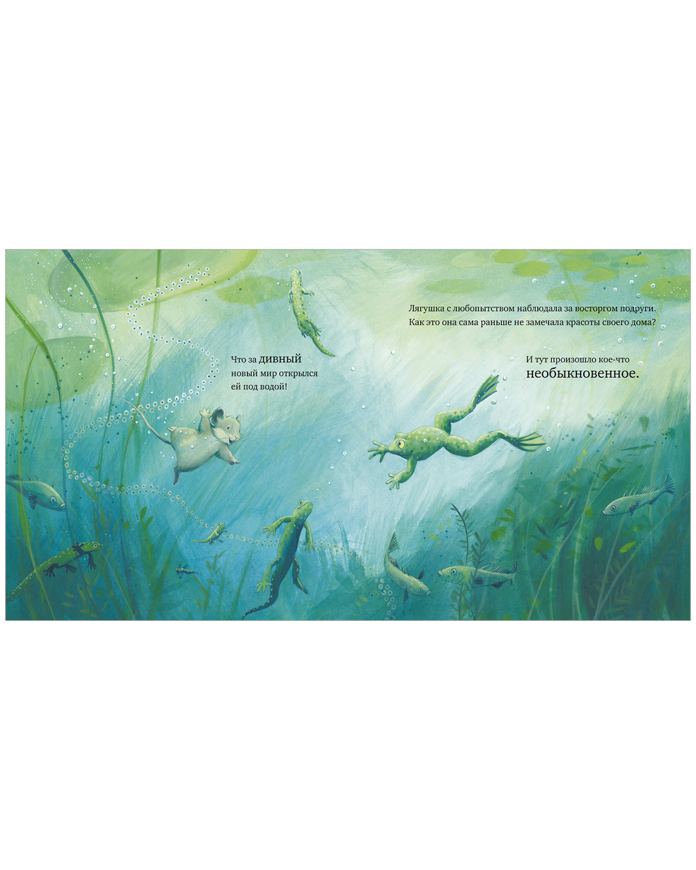 Лягушка совсем заскучала в своем пруду. Вокруг все те же камыши да кувшинки – ничего особенного. Настоящее волшебство наверняка скрывается где-то в других краях! Вместе с подругой-мышкой лягушка отправляется в увлекательное путешествие, чтобы узнать, где же прячется чудо.